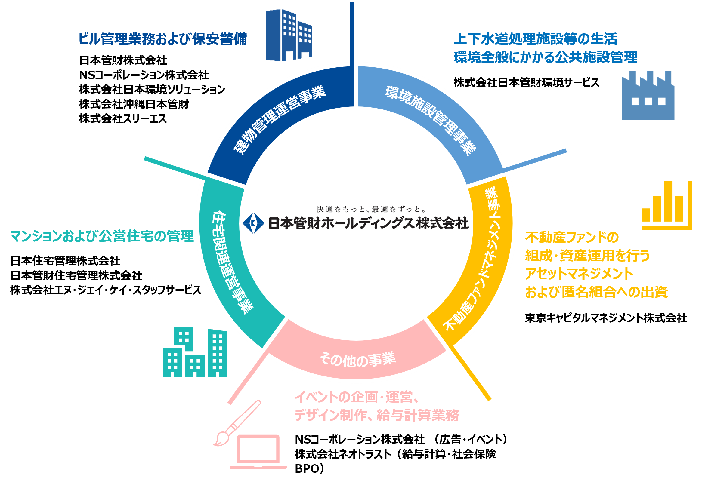 事業内容:オフィスビル、集合住宅、環境施設等の管理運営事業や不動産ファンドマネジメント事業等を営むグループ会社の経営管理及びこれに附帯又は関連する業務