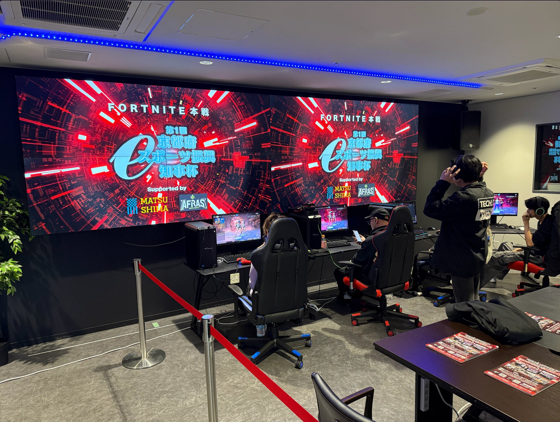 12月22日(日)京都府eスポーツ振興知事杯では京都府在住もしくは京都府の団体に所属している方に向けにFORTNITEのeスポーツ大会を開催しました。デュオ形式で開催し、オンライン配信も行われました。 12月8日、12月15日のオンライン予選会(配信なし)を勝ち上がった総勢9チームが京都サンガスタジアムで激戦を繰り広げました。