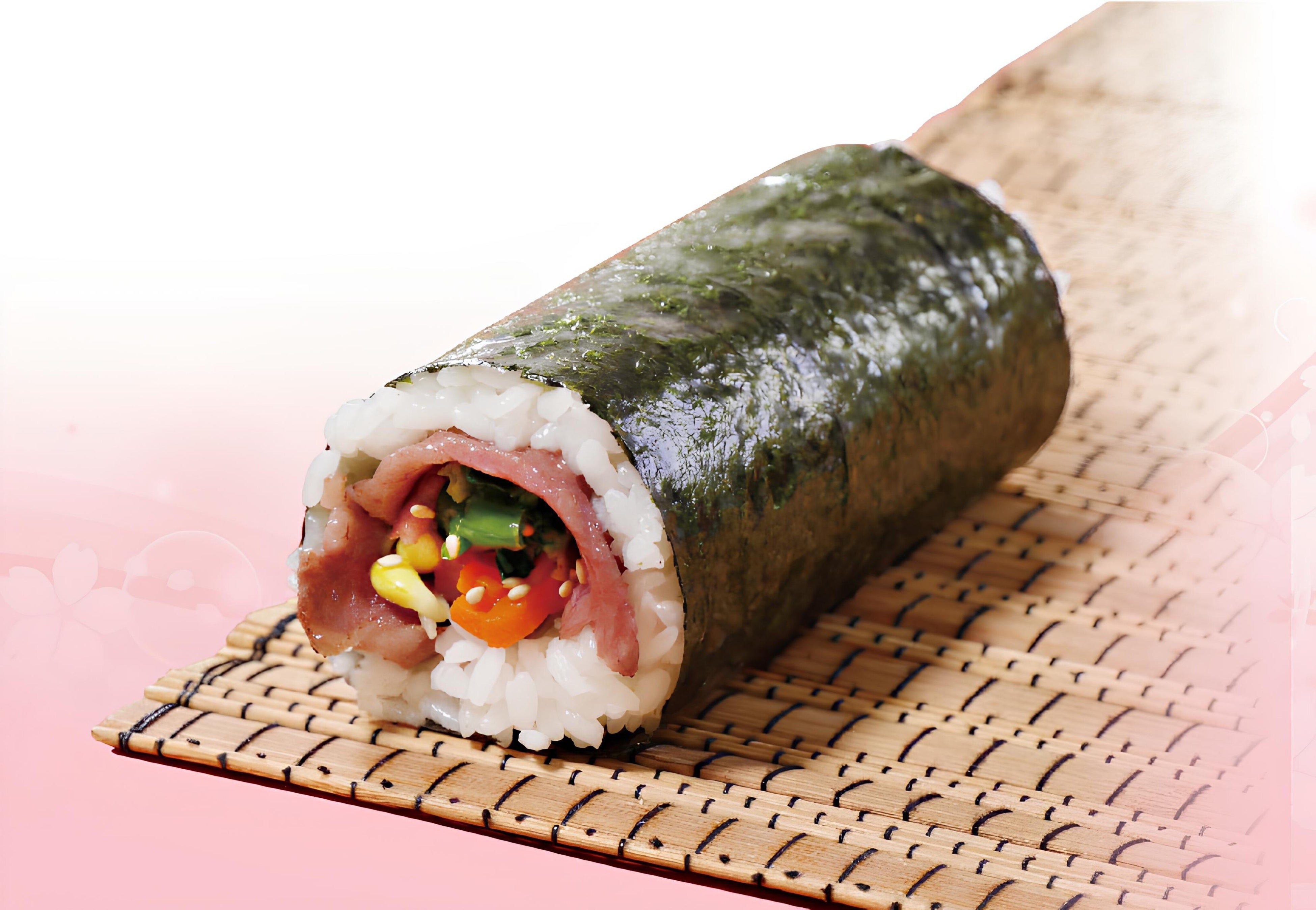 脂の旨味と肉本来の歯ごたえを堪能できる迫力ある招福焼肉太巻きです。