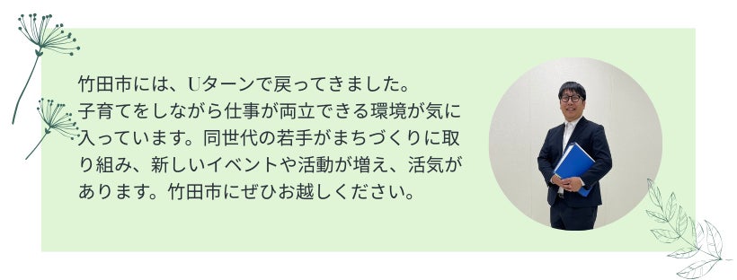竹田市に興味がある方、移住を検討されている方、単身者やUターン希望の方の参加も歓迎します。経験のある担当者と飾ることなく、仕事と暮らしのリアルな話をします。