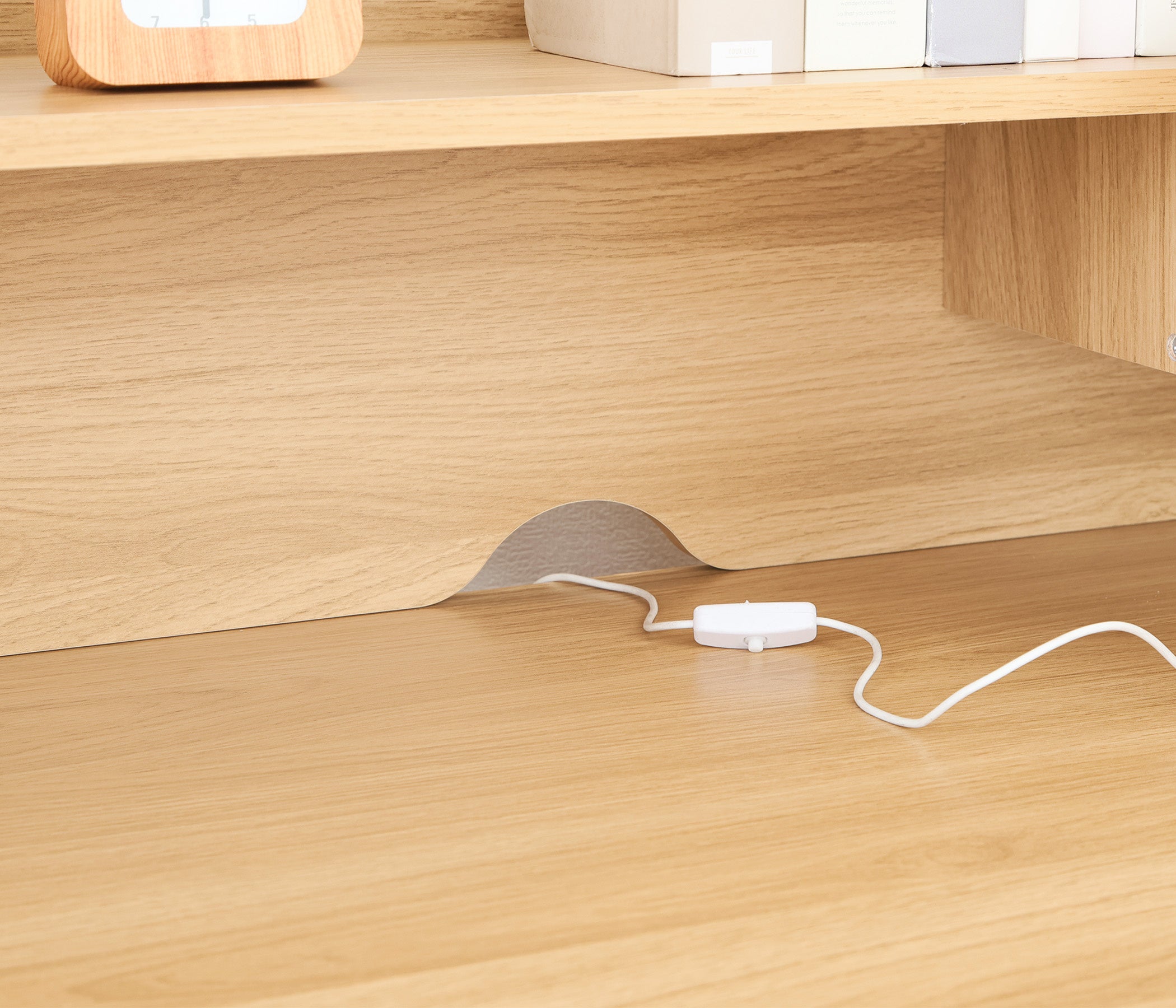 5.スムーズ開閉で出し入れラクラク 6.デスクライトや充電にも便利なコード穴