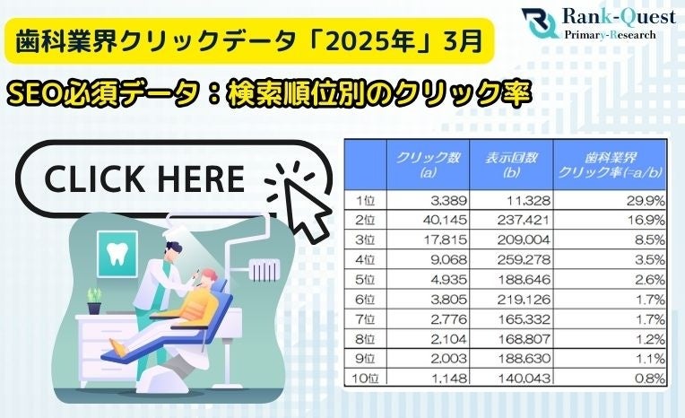 【2025年3月版】歯科医院サイトのSEO必須データ:検索順位別のクリック率(CTR)を徹底解析!(SEO会社ランクエスト調べ)