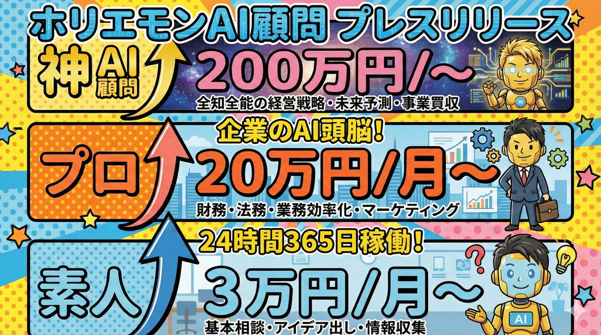 ホリエモンAI学校株式会社(本社:東京都新宿区、代表取締役CEO:荒木 賢二郎、以下「ホリエモンAI学校」)は、AI顧問サービスの提供開始を発表いたします。