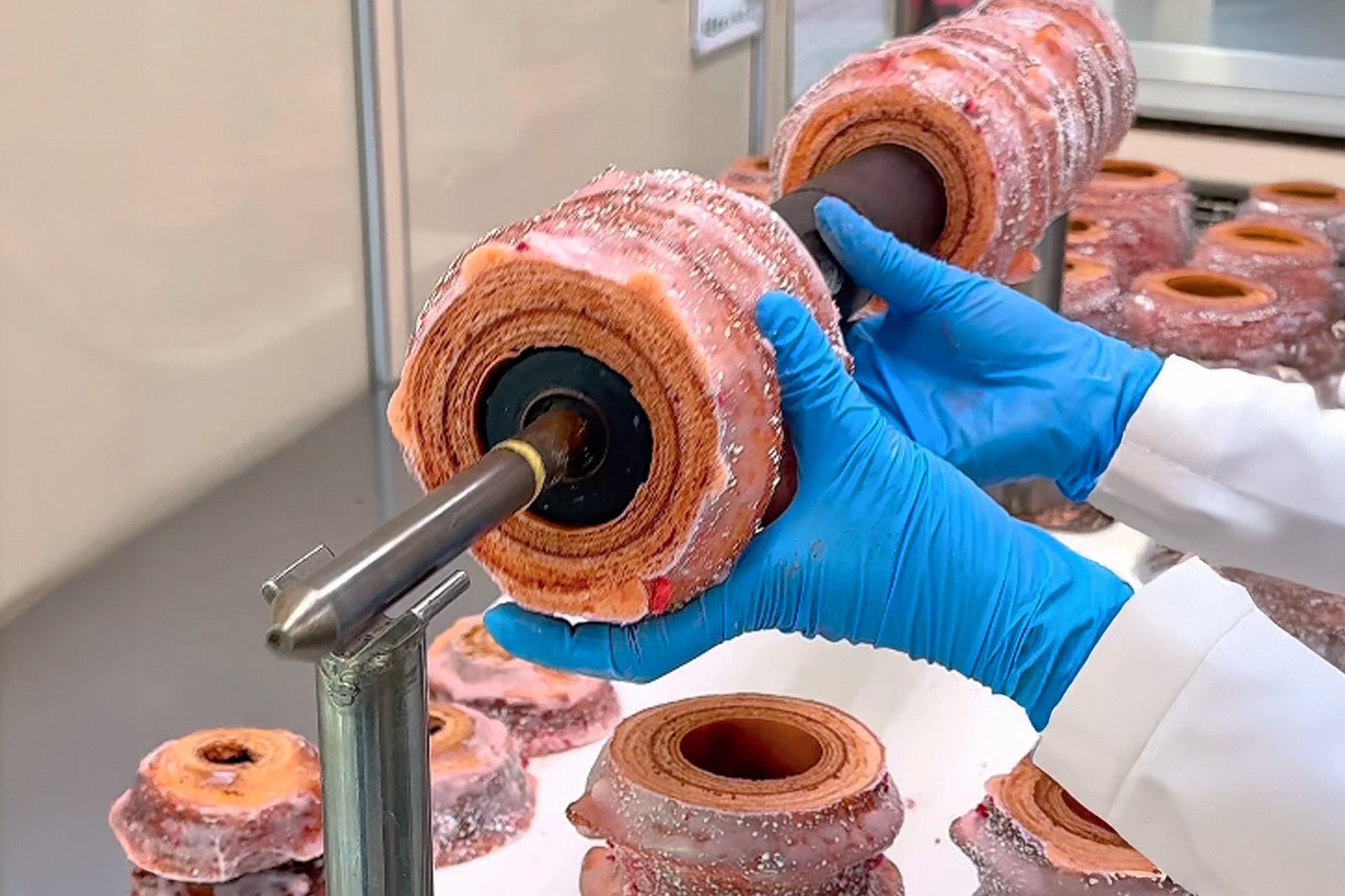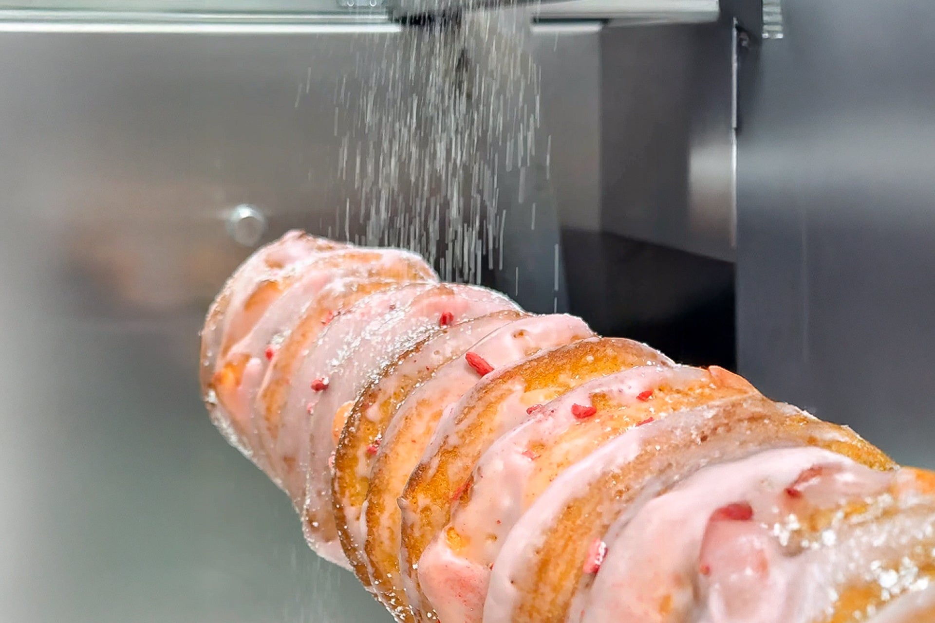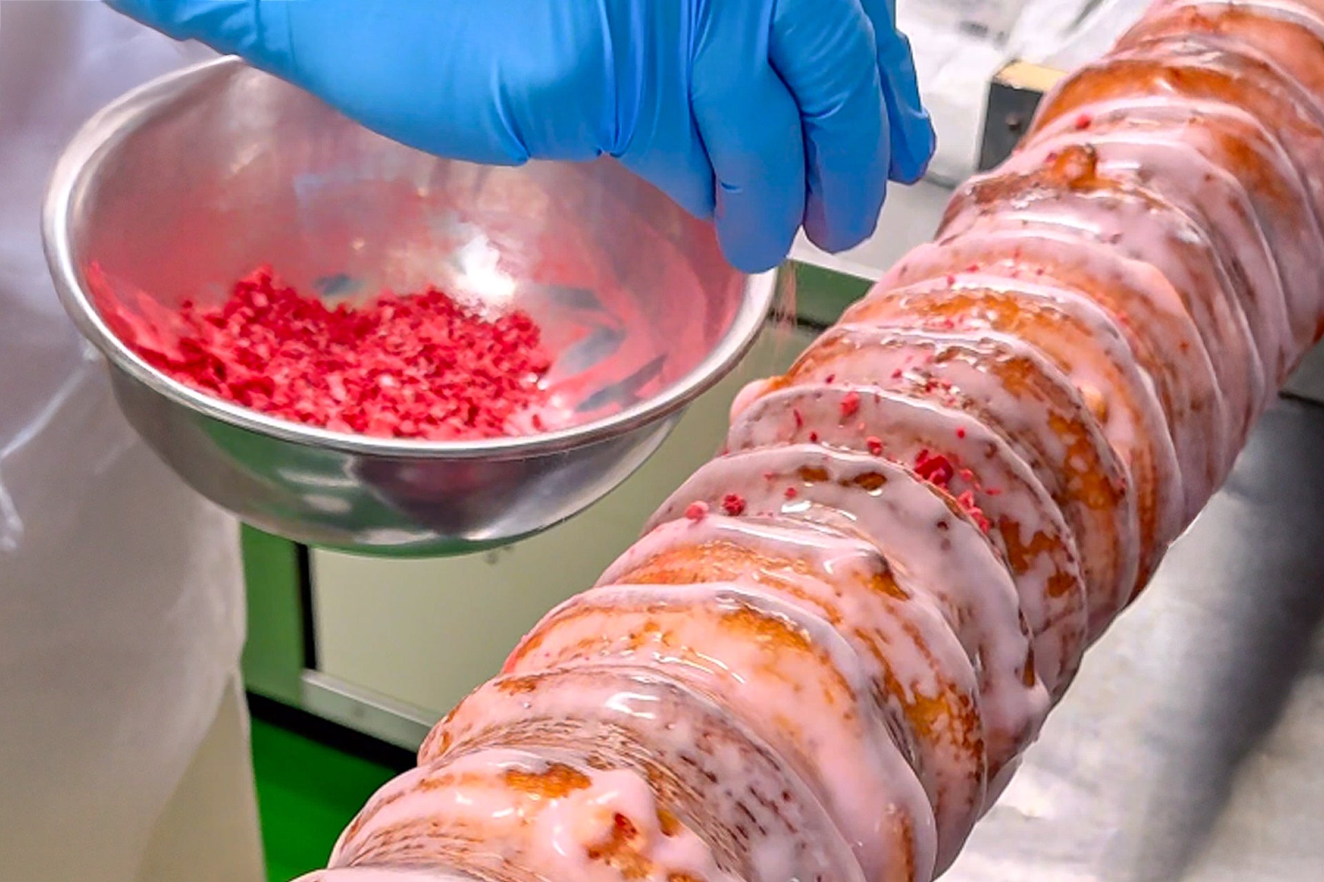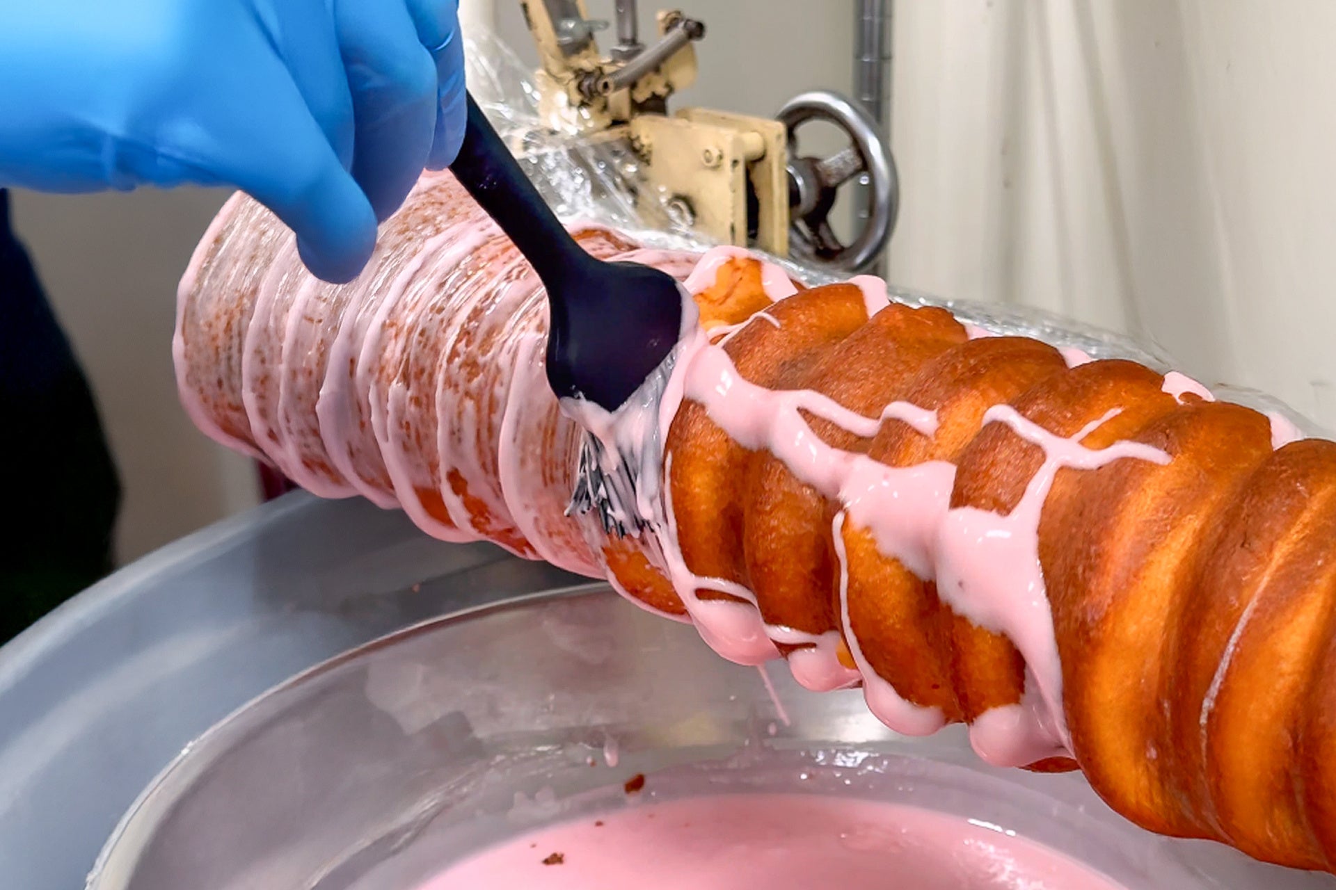 ■ 焼き上がる瞬間まで、美しいピンク色を守る―― ピンクの“山脈バウム”
