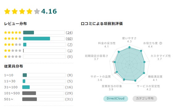 今回「DirectCloud」が受賞したオンラインストレージ部門の「Good Service」は、「BOXIL」上に投稿された口コミを対象に、各カテゴリで総得点の高いサービスに対して付与されるものです。また、2023年6月の「BOXIL SaaS AWARD Summer 2023」から9期連続の受賞となります。