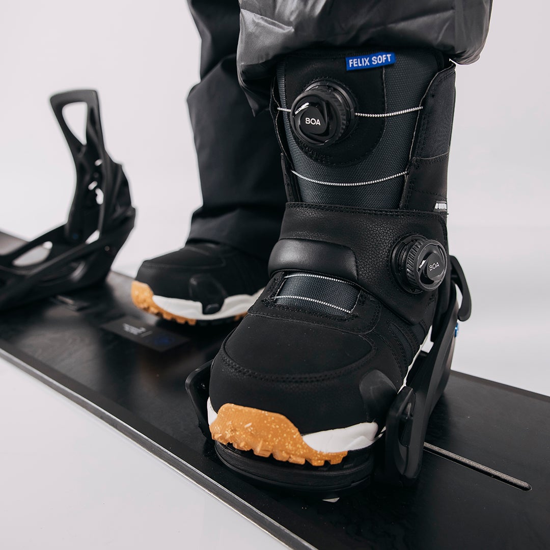 ハイレベルな保温性と快適性を両立させつつ、細やかな調整が可能なBOA®︎フィットシステムを搭載したブーツと、シンプルで直感的なコネクションの便利さを体験することができるバインディングのセットアップです。