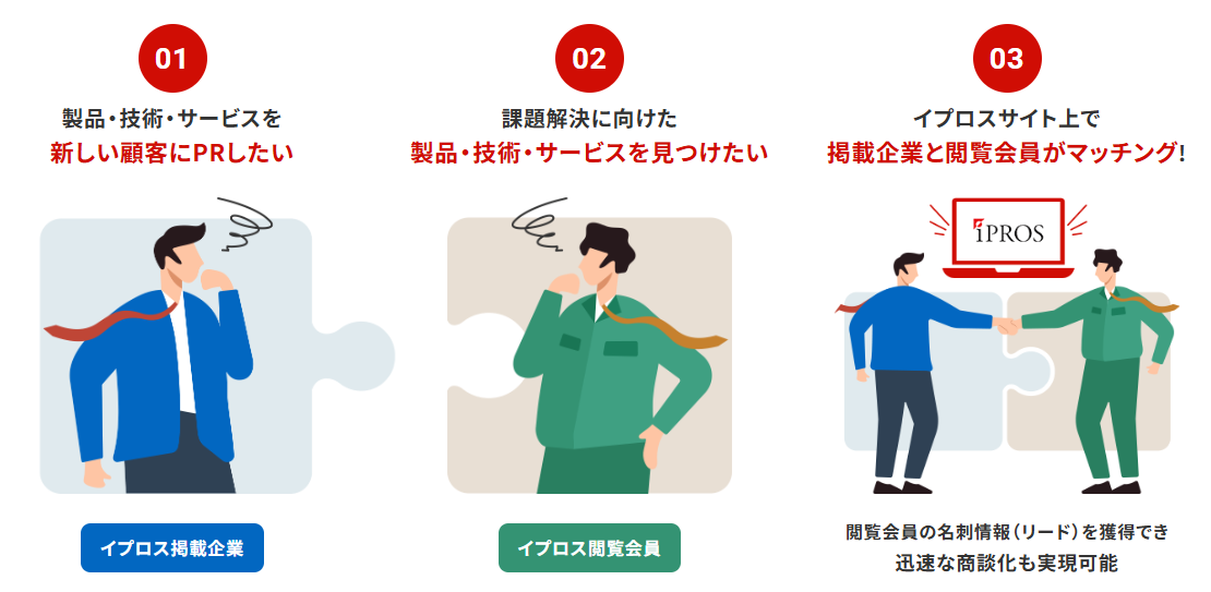 イプロスは、業界・業種の枠を超えて製品・サービスをPRできるリード獲得サイトです。