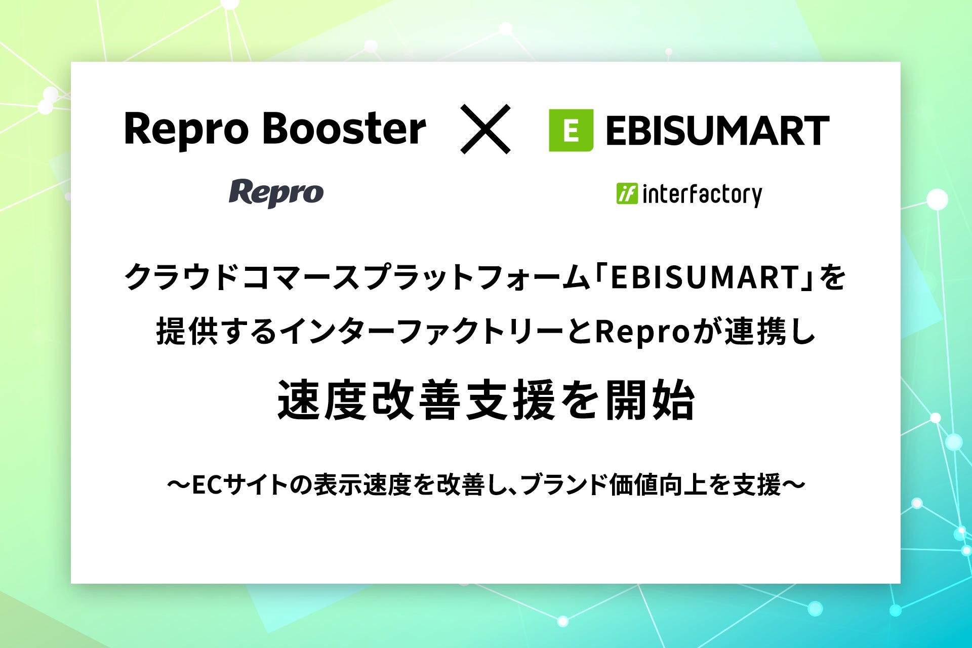 株式会社インターファクトリー(本社:東京都千代田区、代表取締役社長 兼 CEO:蕪木 登、以下 インターファクトリー)が提供するクラウドコマースプラットフォーム「EBISUMART(エビスマート)」は、Repro株式会社(本社:東京都渋谷区、代表取締役 平田 祐介、以下 Repro)が提供するサイトスピード改善ツール「Repro Booster」と連携し、サイトスピード改善支援プランの提供を開始いたします。