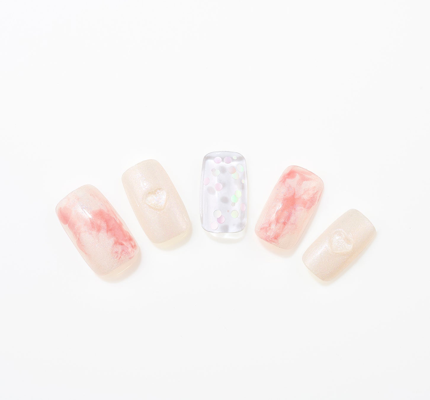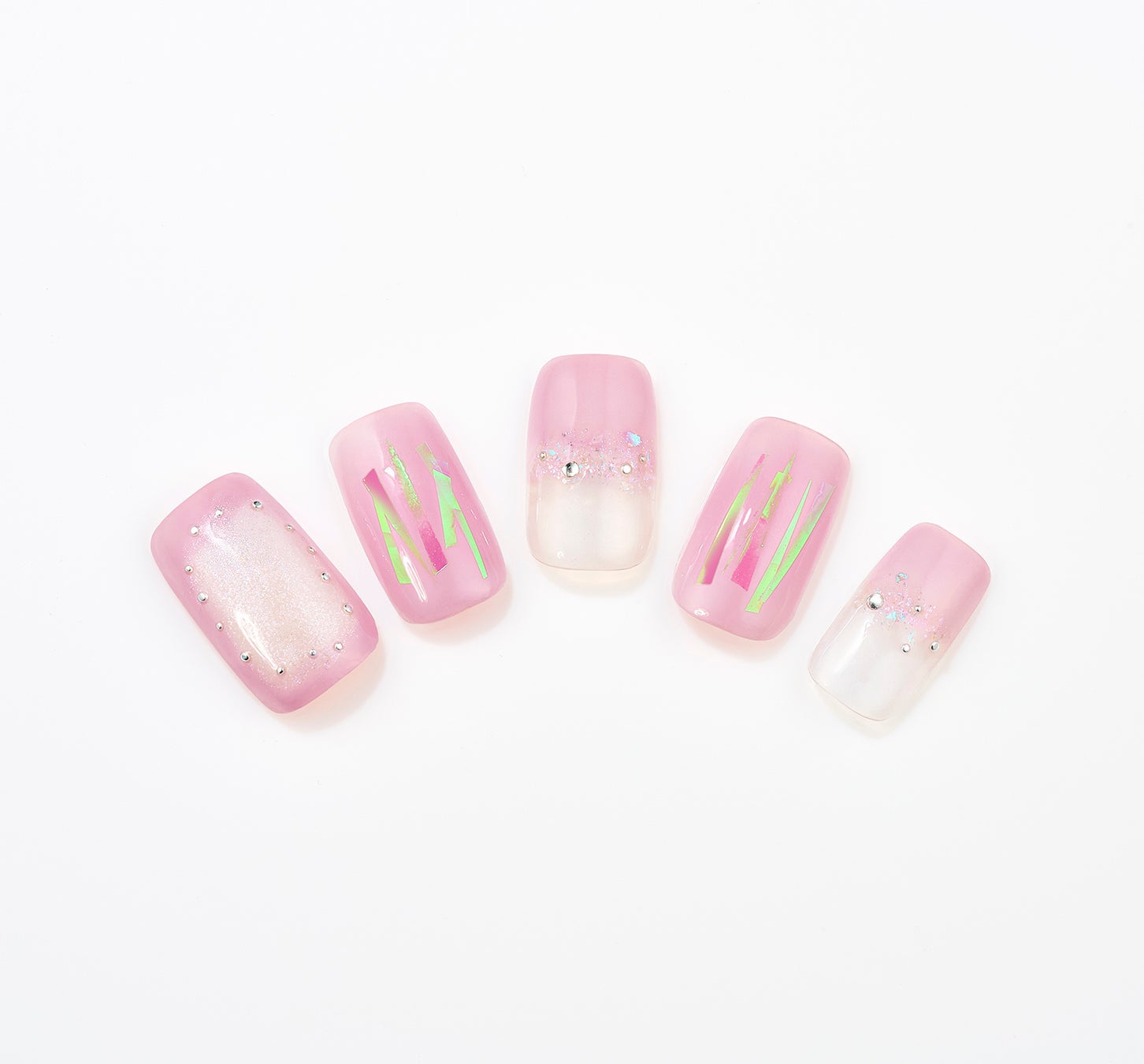 ●いちごの粒を表現した「粒ラメ(ピンク、ゴールド)」が、指先に輝きをプラスします。