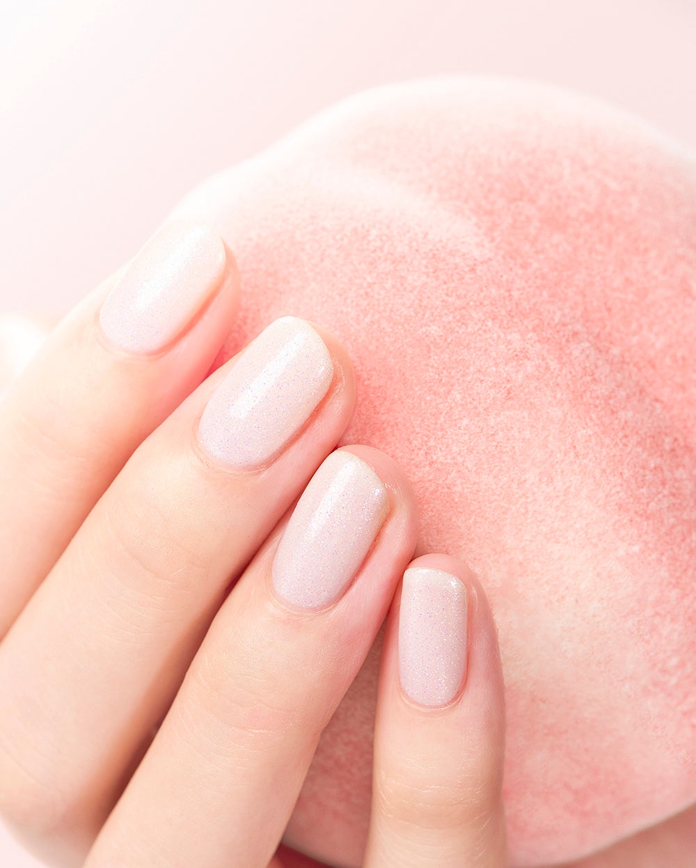 ●「朝摘みいちご」をイメージした、「粒ラメ入りの赤みピンク」です。