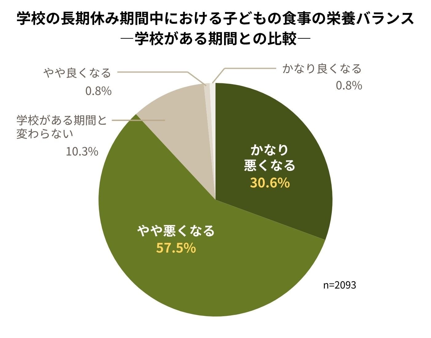 長期休み期間中における子どもの食事状況に関して、今回の調査において以下のような回答が寄せられました。