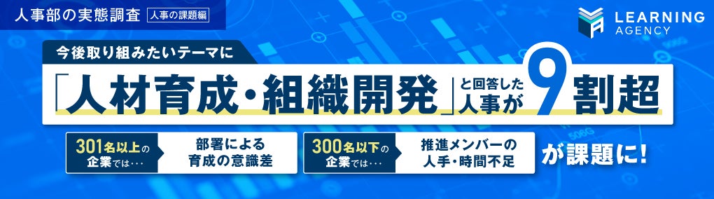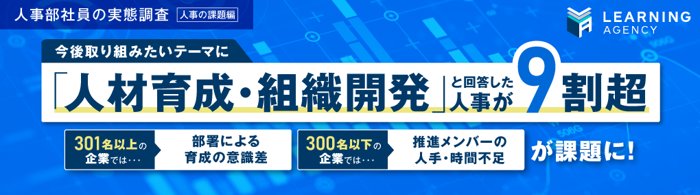 株式会社ラーニングエージェンシー(旧トーマツ イノベーション株式会社、本社 東京都千代田区、代表取締役社長 眞﨑大輔)および人と組織の未来創りに関する調査・研究を行うラーニングイノベーション総合研究所では、2022年10月26日~11月30日の期間で、企業の人事部社員を対象に「人事部アンケート」を実施しましたので、その調査結果を公表いたします。