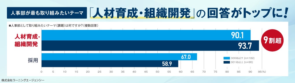 ・人事部として取り組みたいテーマ、従業員規模に関わらず9割の人事が「人材育成・組織開発」と回答