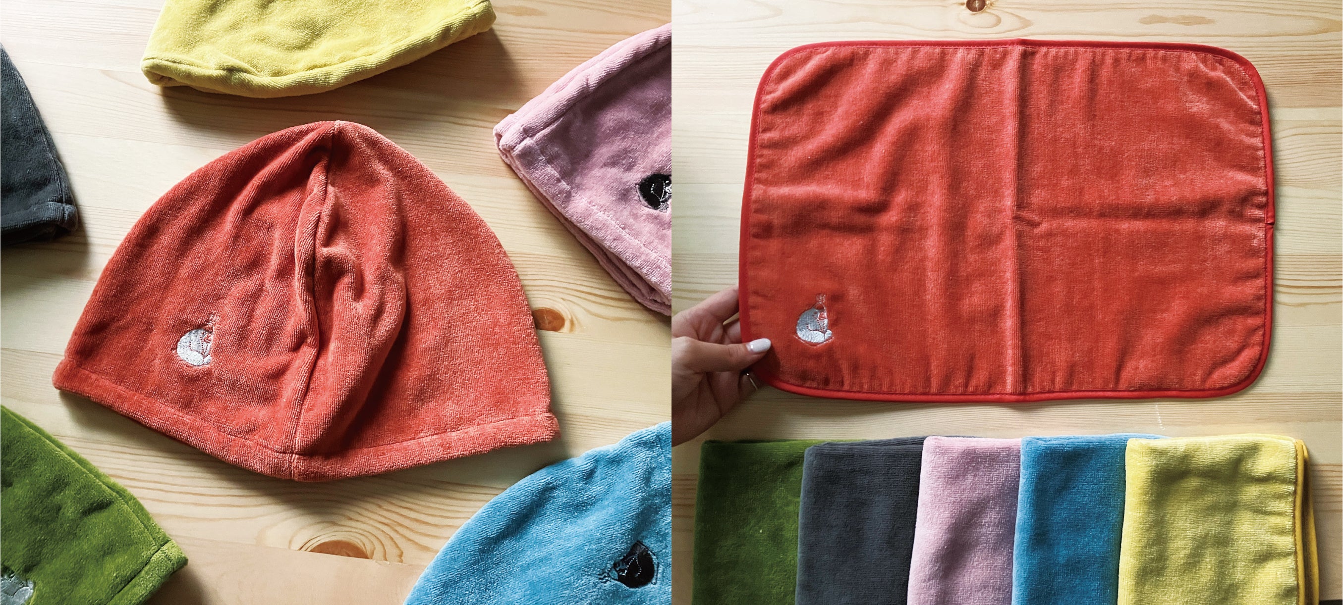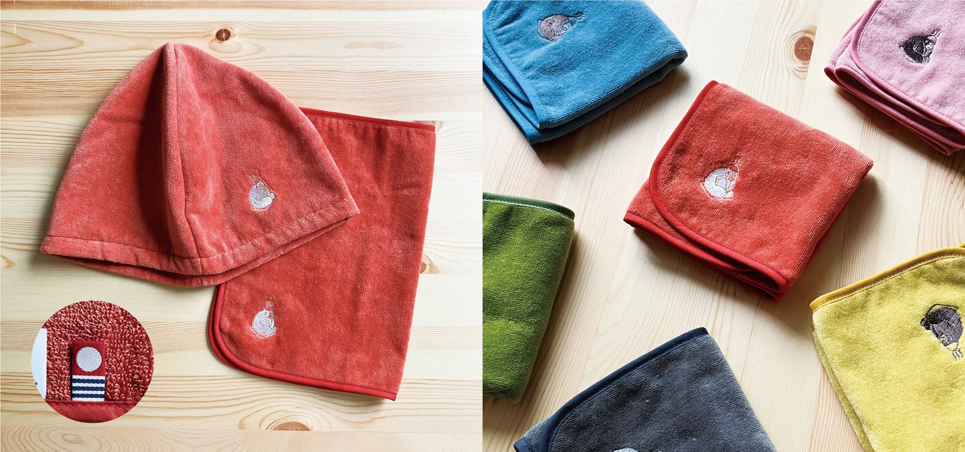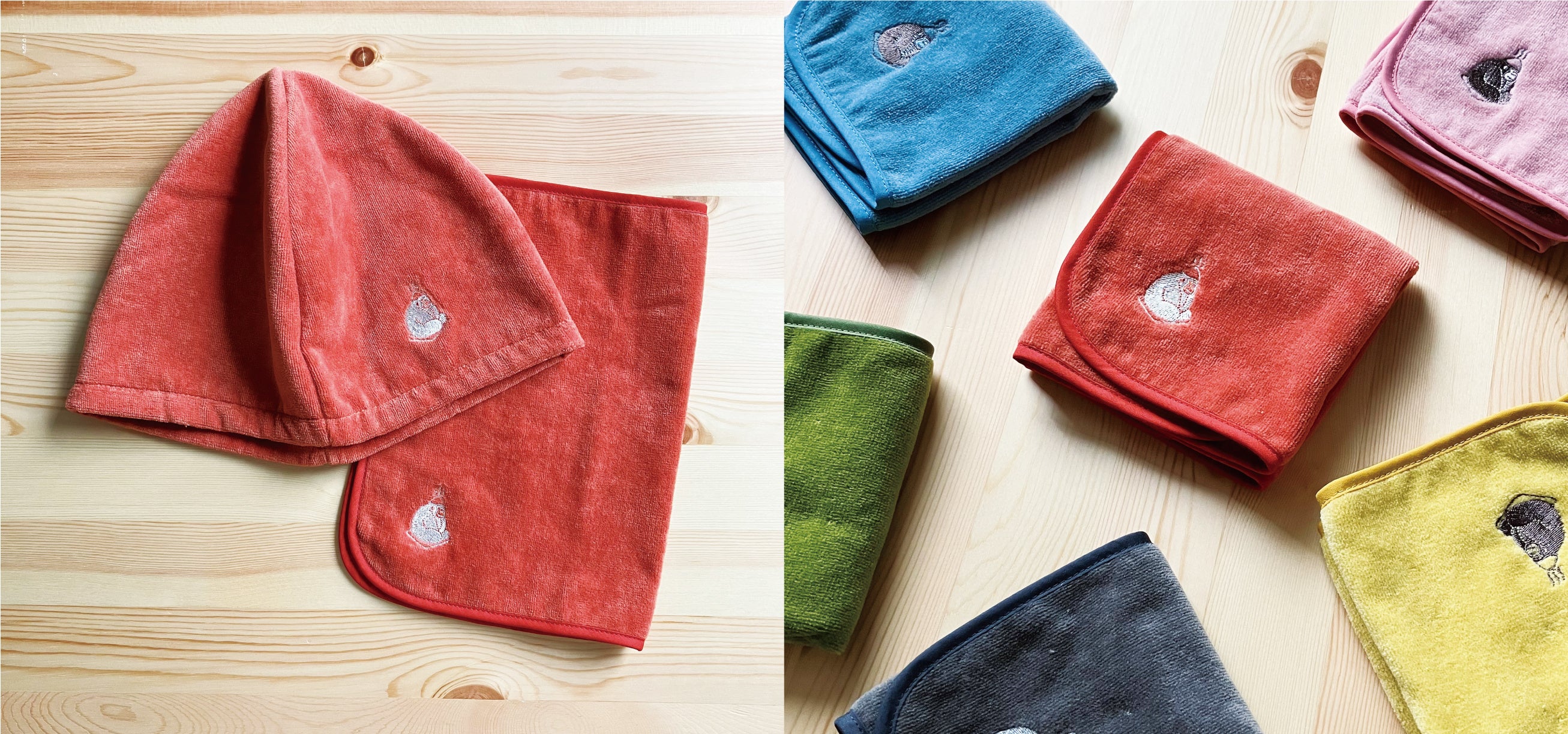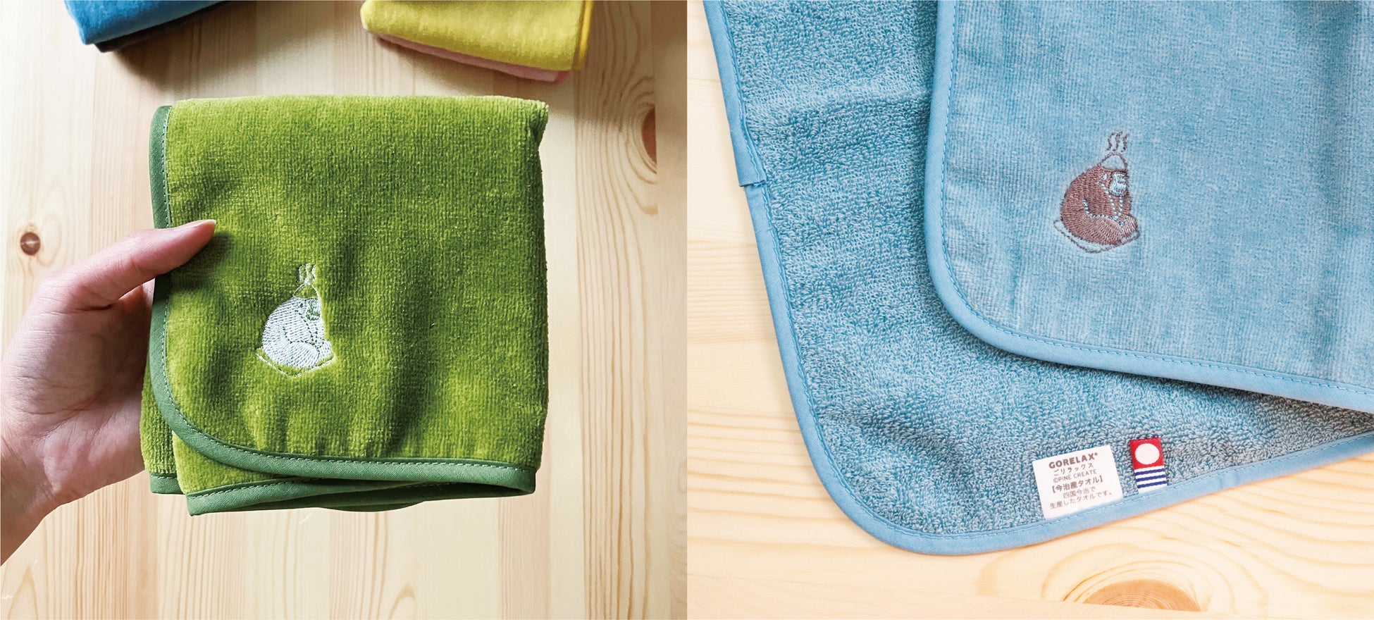 どちらもきめの細かいシャーリング加工を施された今治産タオルで作られています。