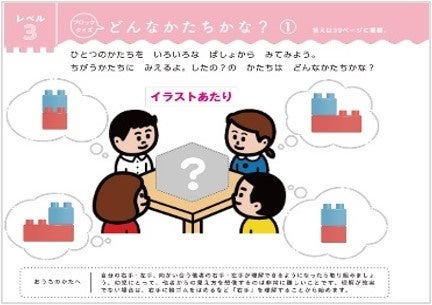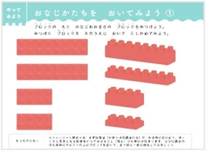 ガイドでは、大きさや色での分別からはじめ、ブロック高さを比べたり、左右対称に組んだり……。算数的基礎力を育みながら組み立てた時の位置関係や立体をイメージできるようになり、高い創造性が育まれます。