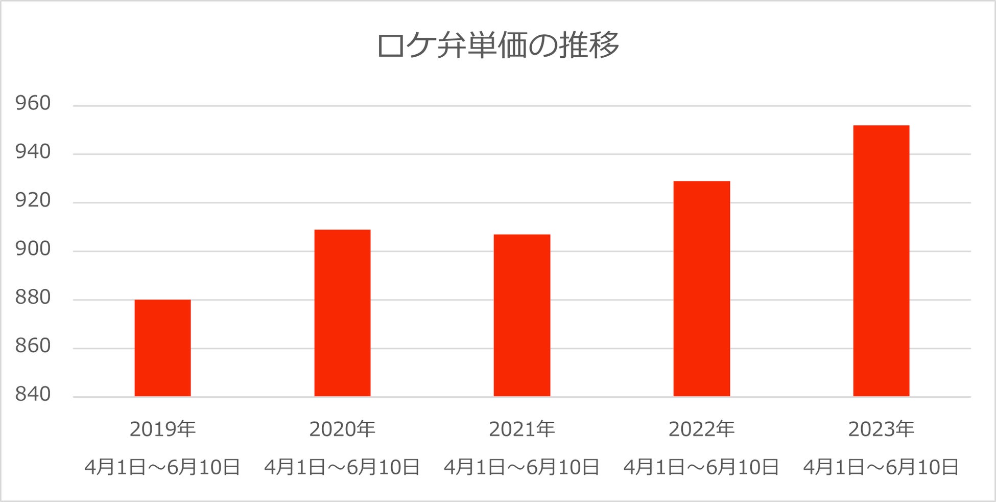 ロケ弁業界における最新の調査結果を発表します。4月1日から6月10日までの期間を対象に、2019年~2023年の状況を比較しました。