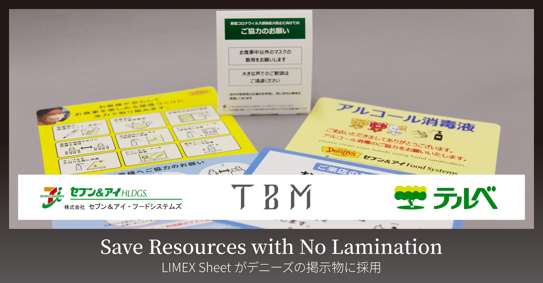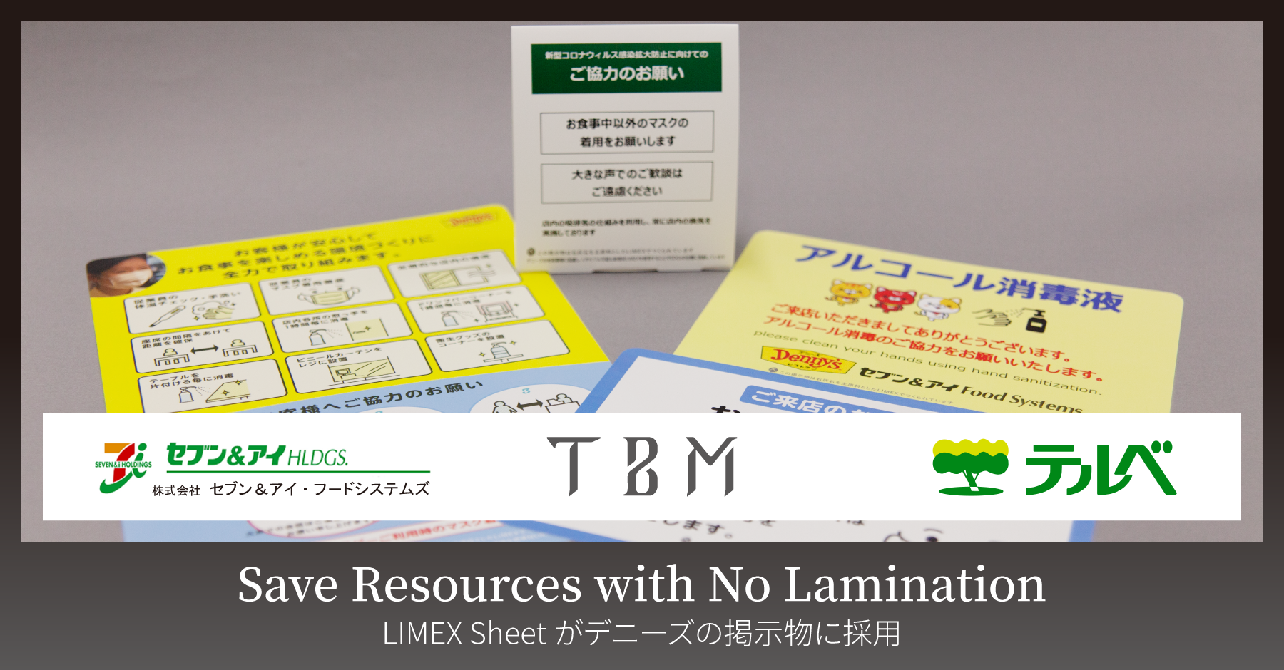 TBMの石灰石を主原料とする「LIMEX Sheet」がセブン&アイ・フードシステムズの運営するデニーズ全店のラミネート掲示物に採用