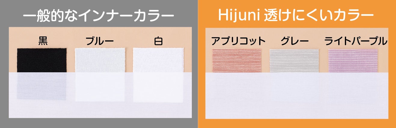 実証1 子どものブラジャーに多い「白」「淡いブルー」「黒」は透けやすい ハイジュニからの新提案カラーは、子どもも着けやすい「くすみパステルカラー」