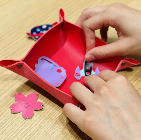 イベント内容:ランドセル生地でできた“パーツシール”を使ったオリジナルトレーづくり