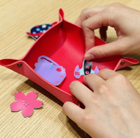 本イベントでは、小さなお子さまから大人の方までどなたでも気軽に楽しんでいただけるよう、ランドセル生地でできた“パーツシール”をオリジナルトレーに貼ってつくる簡単工作を体験いただけます。