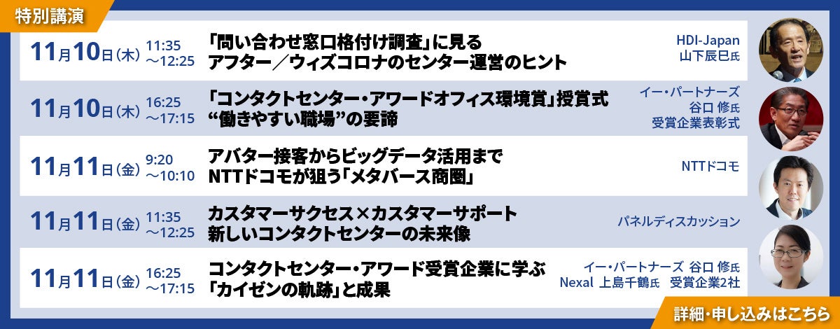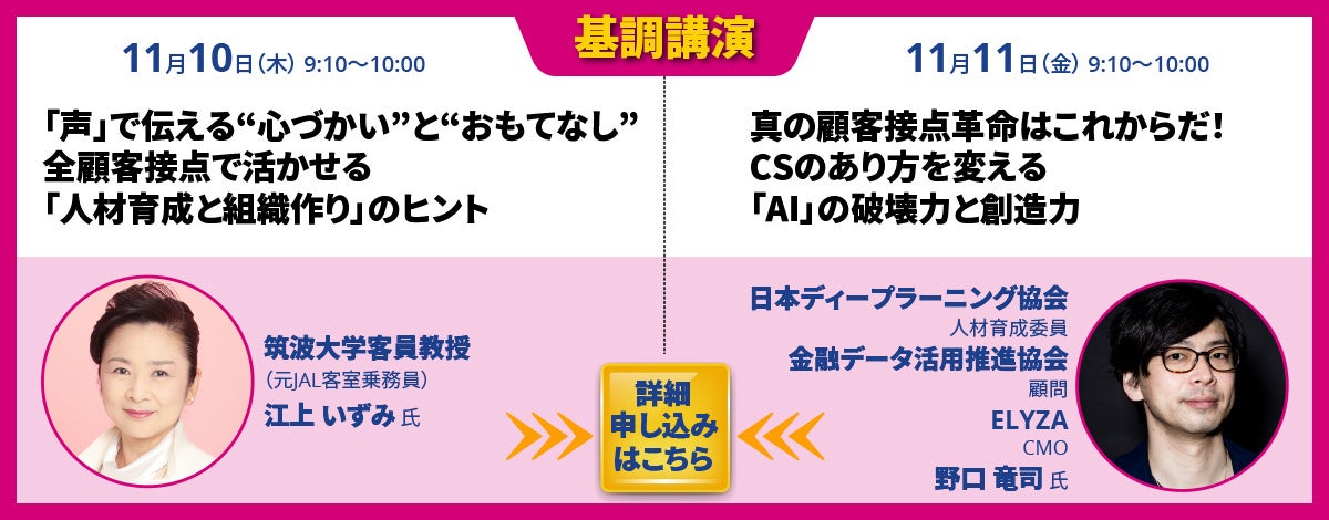 今年の基調講演では、コロナ禍における消費行動の激変と同時に浮上した過去に類を見ない深刻な人手不足により、顧客対応を担うセンターの現場ではその対応に追われている現状を踏まえ、「人材育成と組織作り」「AIによる顧客接点革命」をテーマに、プロフェッショナルによる解説を試みます。