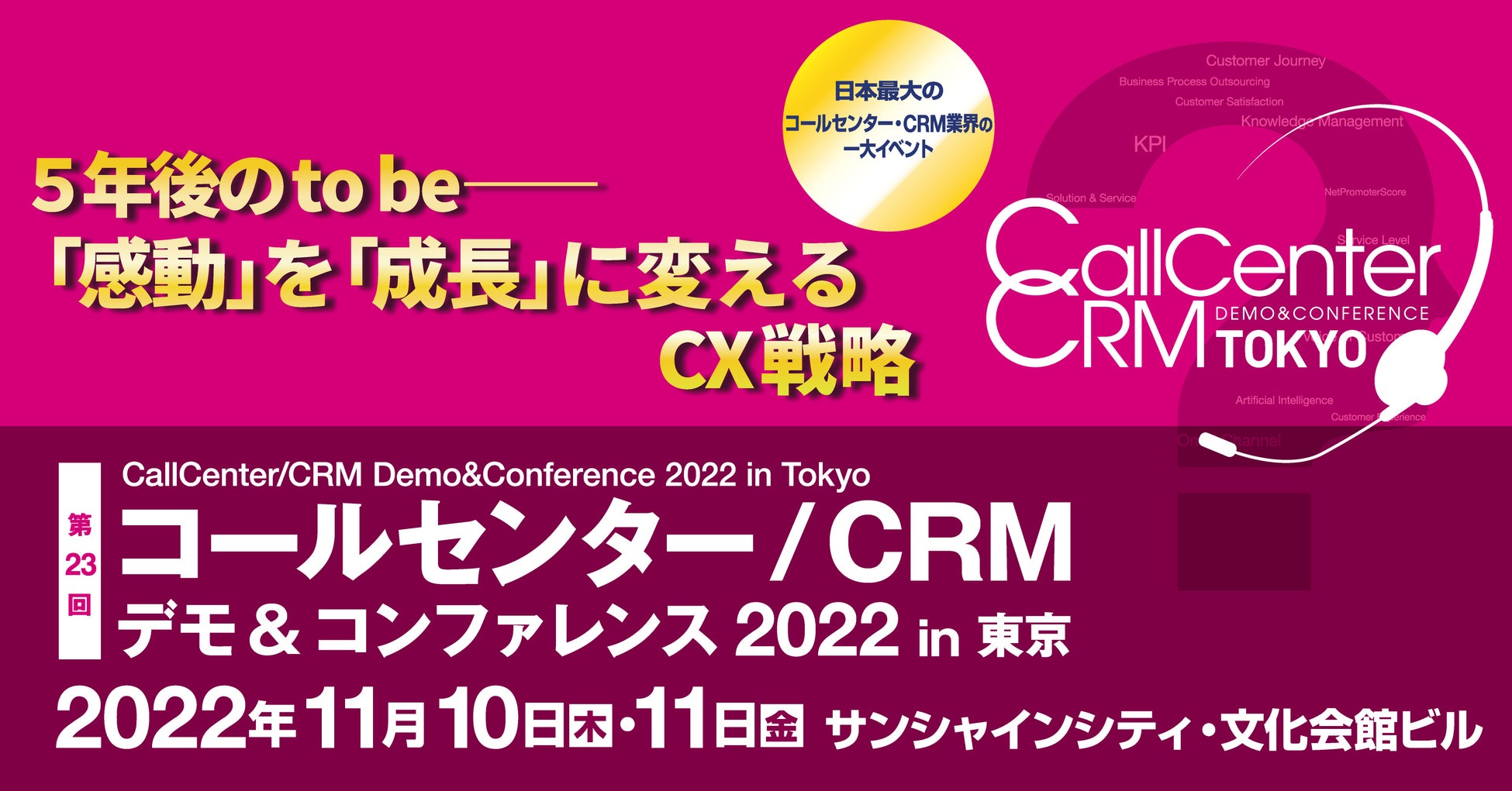 【今週開催】カスタマーサポート業界最大級の展示会「コールセンター/CRM デモ&コンファレンス 2022 in 東京 (第23回) 」【11/10(⽊)・11(⾦)】