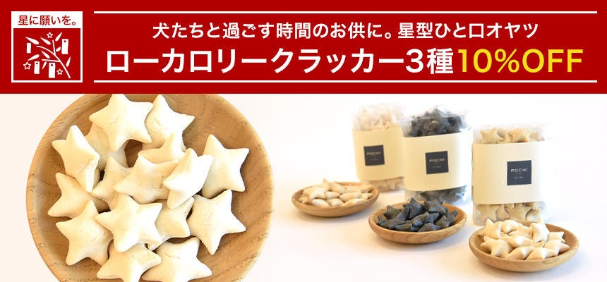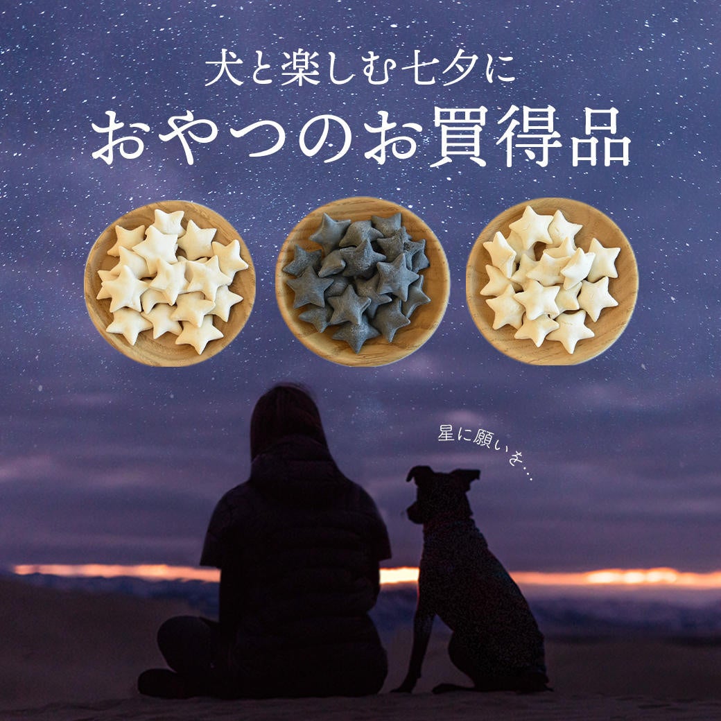 プレミアムドッグフード専門店・通販「ポチの幸せ(POCHI)」(運営:マーケティングパートナー株式会社、本社所在地:東京都新宿区、代表取締役社長:権田真司、Tel:03-6772-8194、https://www.pochi.co.jp/)は、七夕の時期の期間限定のキャンペーンとして、星型のひと口サイズの犬用おやつ3種類(「昆布」「アロニア」「チャコール」)を期間限定で10%OFFで販売します。