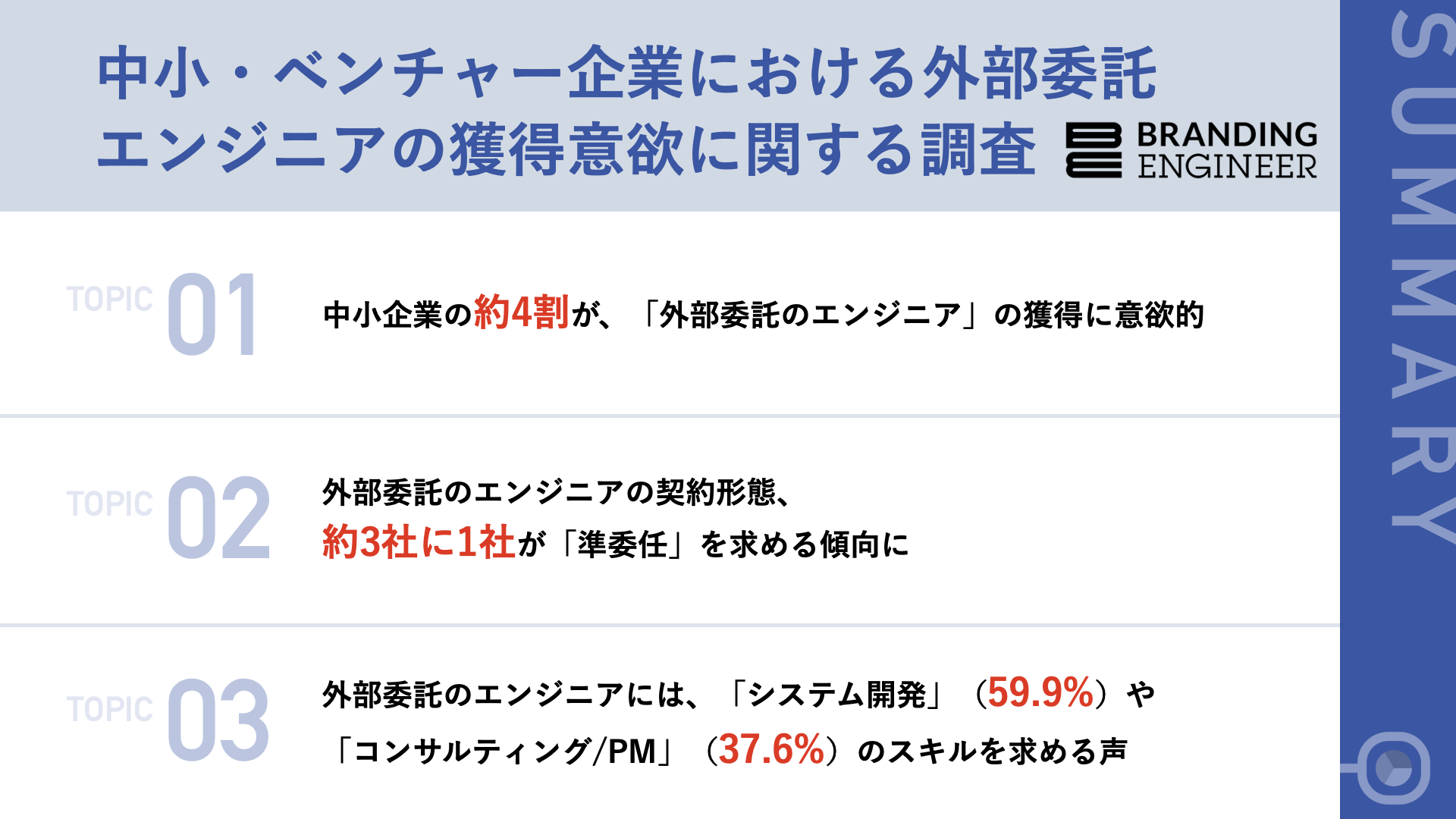 - 中小企業の37.6%が、「外部委託エンジニア」の獲得に意欲的