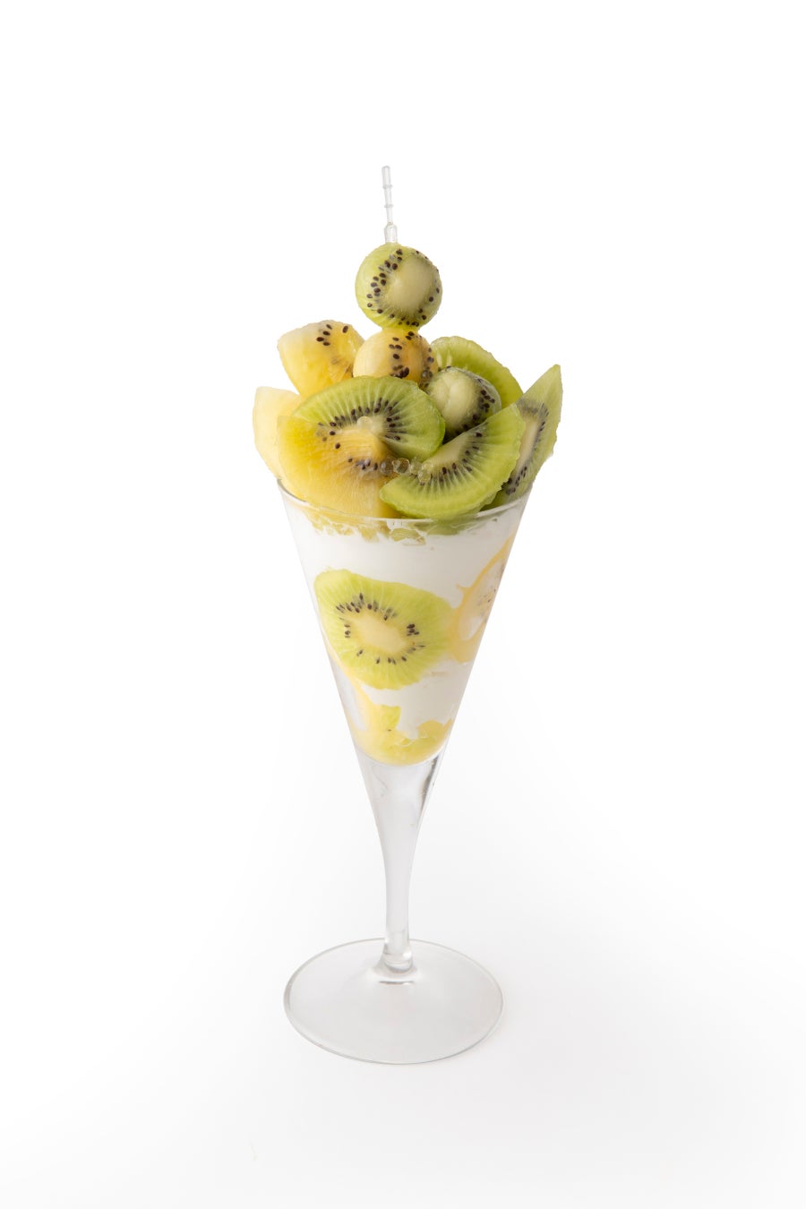 ニュージーランドの豊かな自然でていねいに育まれたゼスプリ・グリーンキウイとサンゴールドキウイを使用。バランスのとれた甘みと酸味が魅力のグリーンキウイと、トロピカルな甘さが特長のサンゴールドキウイをパフェに仕立てました。