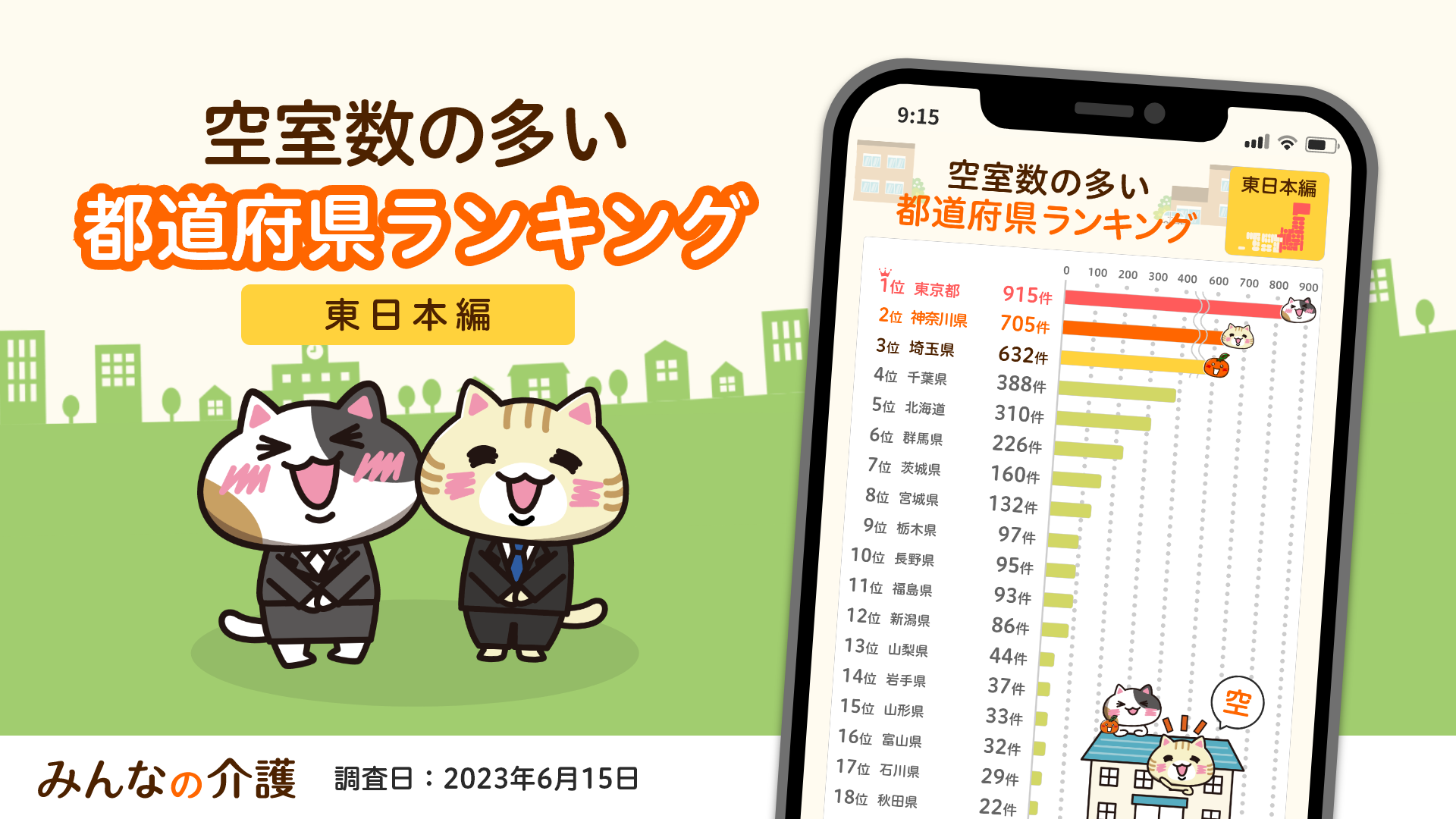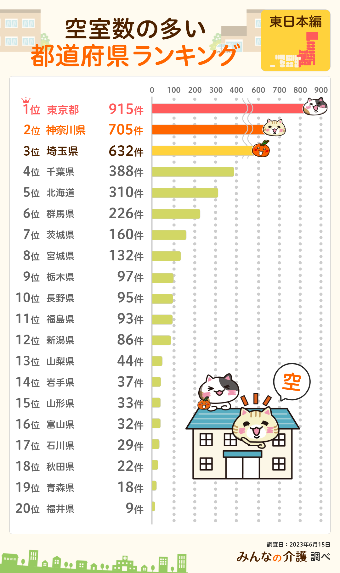 【みんなの介護】老人ホームの空室数が多い都道府県ランキング<2023年6月・東日本編>