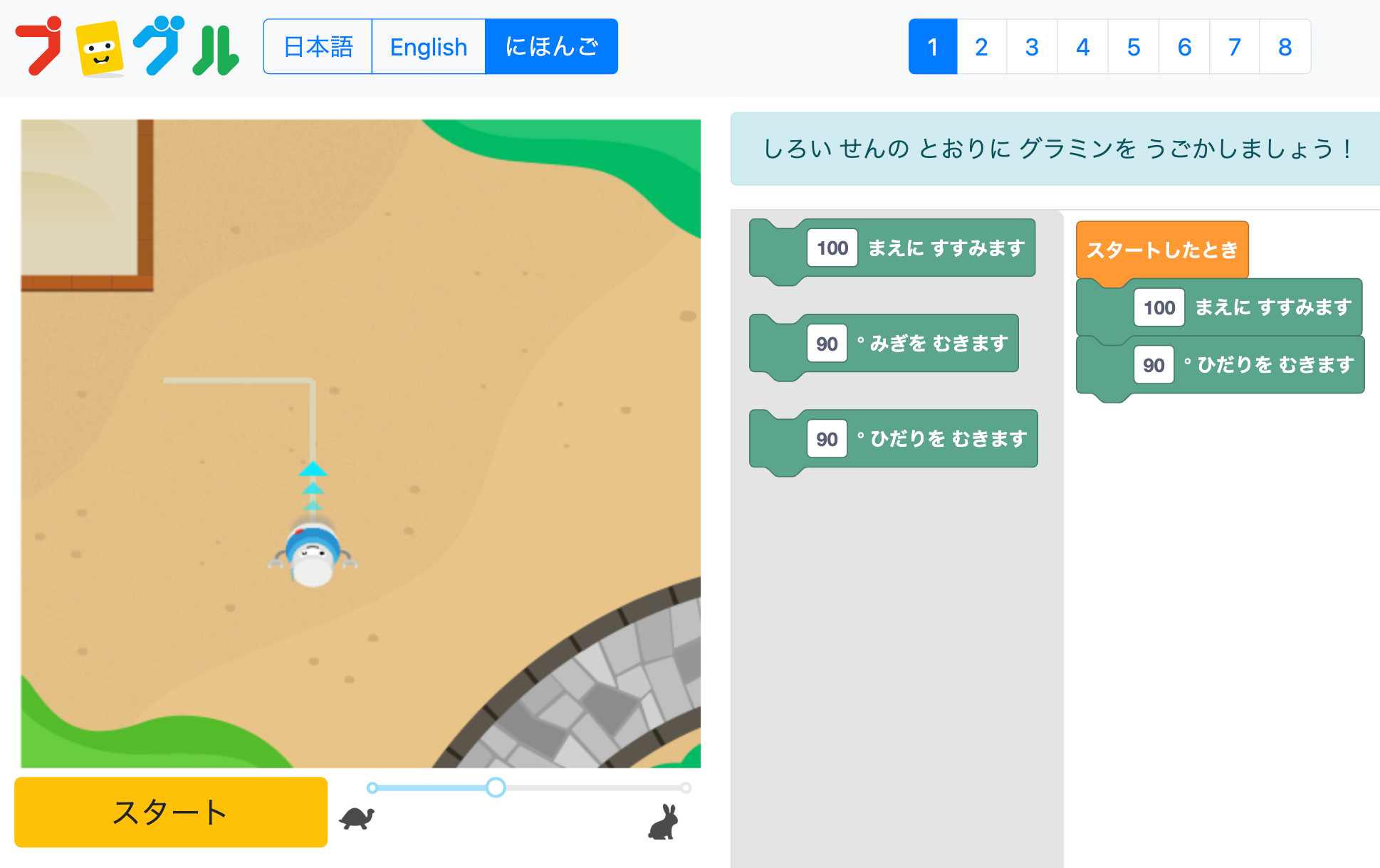 ⚫️通常版と比べて、「ジャンプ→とおくにいく」など、ブロックの言葉が本当に分かりやすくなっていてびっくりしました。誰にでもわかりやすいって、教育で大事なことだと、今回改めて感じました。