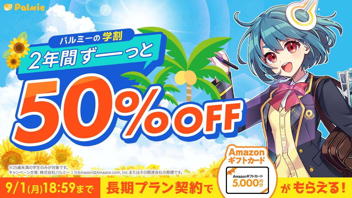 この夏はイラストを学ぼう!パルミーの初月50%OFFキャンペーンが本日スタート&学割長期プラン限定でAmazonギフトカード5,000円分プレゼント!『学生応援キャンペーン』開催中!