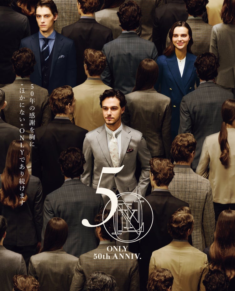 株式会社オンリー(本社所在地:京都市、代表取締役社長:中村 直樹)は、創業者、中西浩一が京都北山通に「オンリー本店」を開店以来、2026年で50年の節目を迎えます。より良いスーツを適正価格でつくり、より多くのお客様に着ていただきたい。そんな普遍の企業理念を実現すべく、100年以上ほとんど変わらなかったスーツの構造をはじめ、販売形態や店舗設計などに革新的な進化をもたらしてきました。そして半世紀の歴史を通し、日本のスーツとビジネススタイルの発展に、微力ながらも寄与してきたと確信しております。