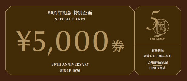 この節目を記念して、感謝の想いを形にした特別キャンペーンを実施します。ONLYで2010年発売以来、愛されづづけている名品「トラベラー」シリーズをご購入いただいた方に、50周年にちなみ、5,000円分のお買い物優待券をプレゼントいたします。ぜひこの機会にONLY屈指のロングセラーをお試しください。