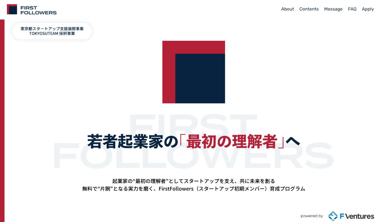 F Ventures、東京都「TOKYO SUTEAM」協定事業として、U25起業家の「最初のフォロワー」を育成する共同創業者・CxO育成プログラム「FirstFollowers」を発表