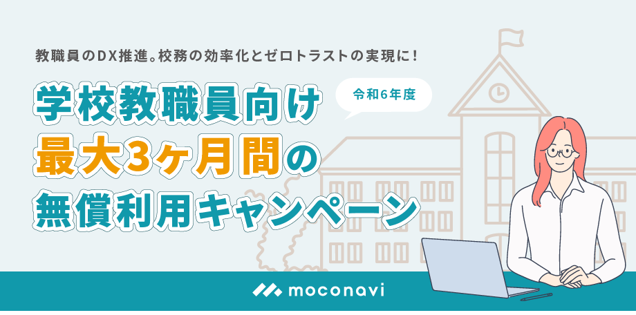 レコモットは、校務DXを推進し、教職員の働き方改革を支援します。ゼロトラストに対応した「moconaviシリーズ」の「最大3ヶ月の無償利用キャンペーン」を開始!