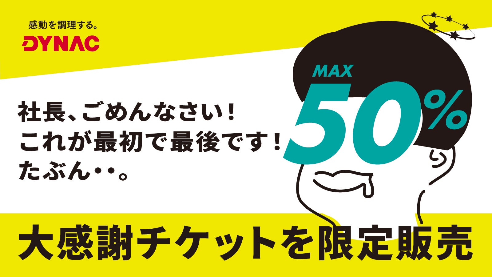 "社長にキレられた"とサブタイトルを付けるほどの大還元となるキャンペーンの第2弾は、ダイナック初の試みとしてクラウドファンディングサイト「Makuake」にて『DYNACプレミアムお食事券』を販売いたします。