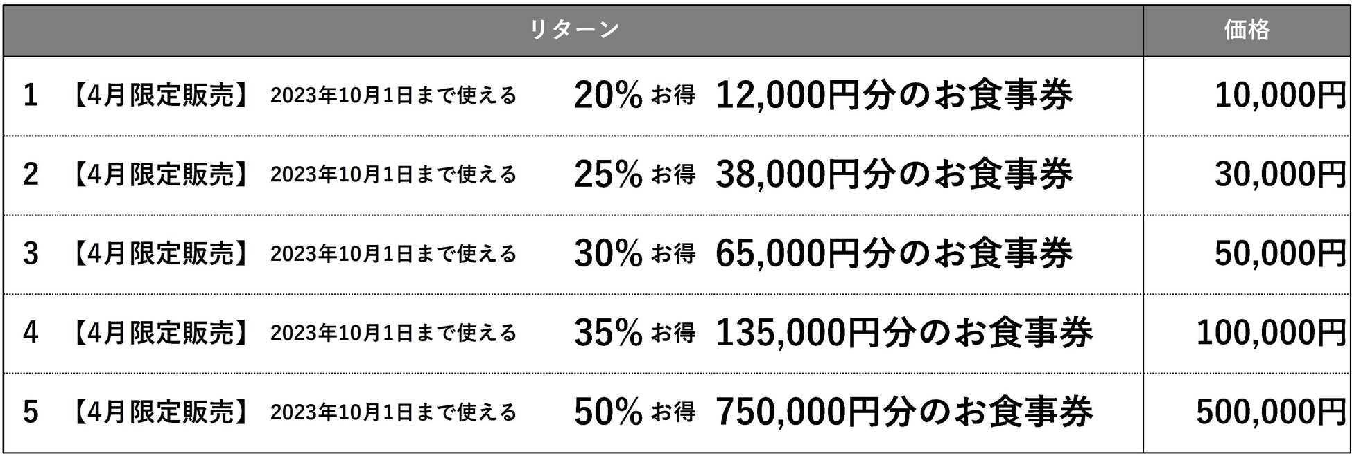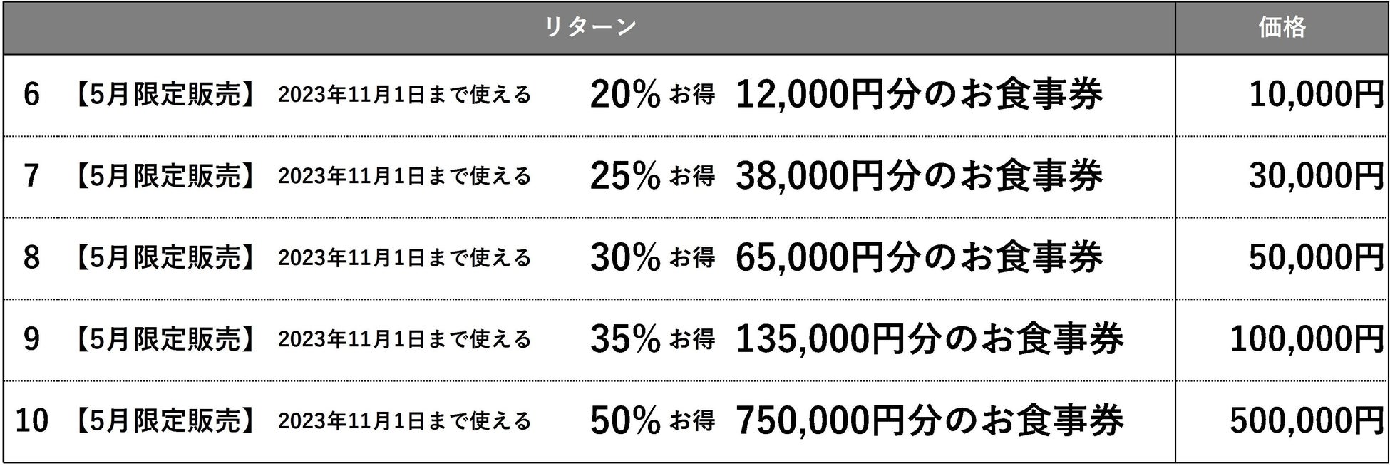 2023年11月1日まで使えるお食事券(5月にお届け)