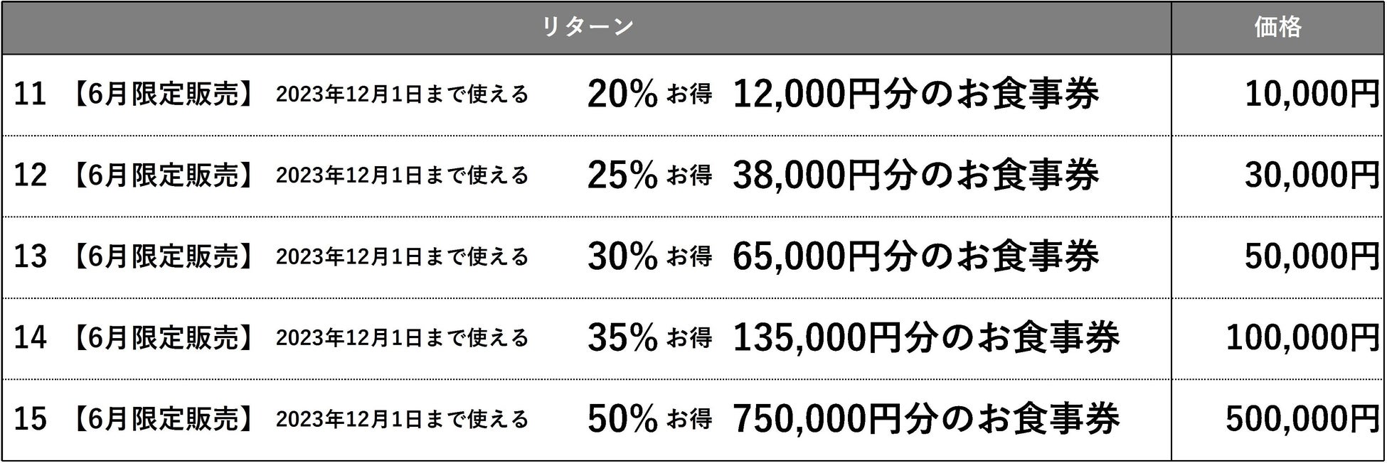 2023年12月1日まで使えるお食事券(6月にお届け)