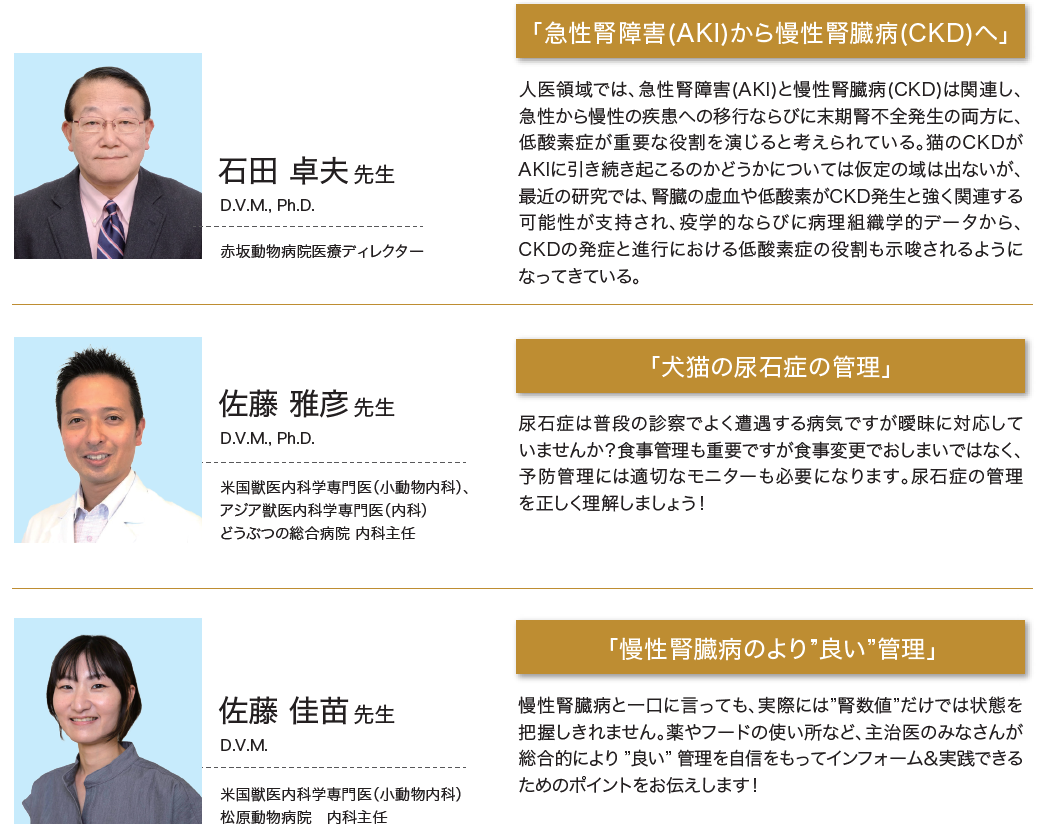また10月1日(土)~31日(月)まで開設するシンポジウム特設サイトでは、期間中いつでも獣医療の知識を学べるEラーニングやクイズムービーのほか、ロイヤルカナンの腎泌尿器カテゴリー製品の紹介、過去に実施したセミナー(アーカイブ動画)の視聴など、多くのコンテンツをお楽しみいただけます。