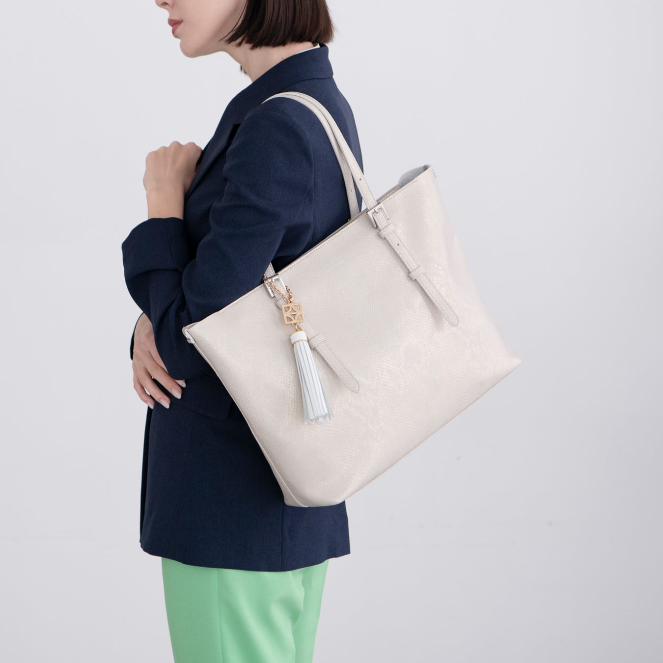 A4ファイルや大きめのノートパソコンもしっかり入る大容量のトートバッグ。外観からは想像できないほど軽く、重さはMサイズで約600gと超軽量です。