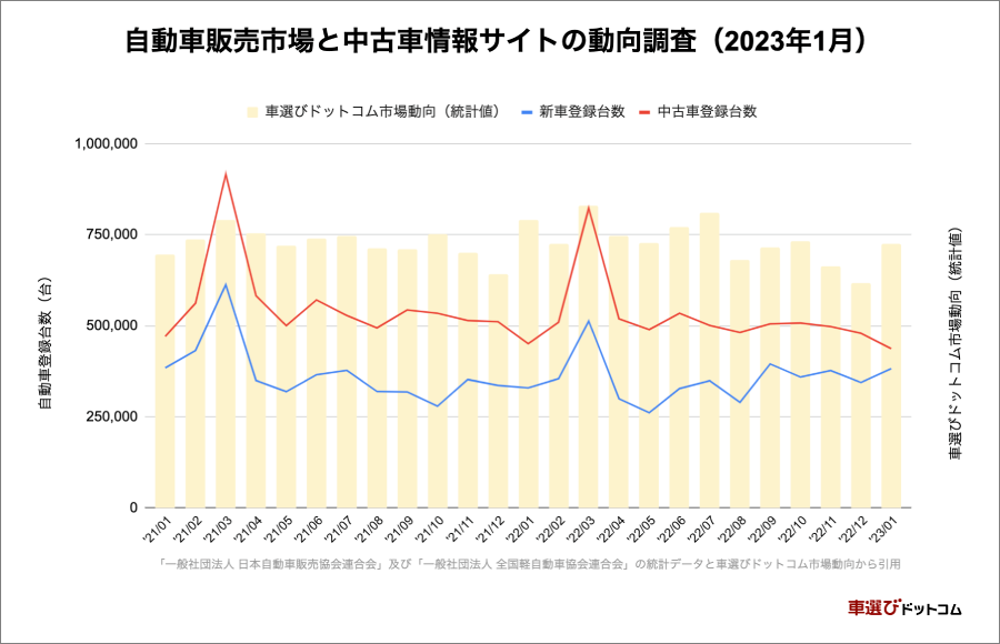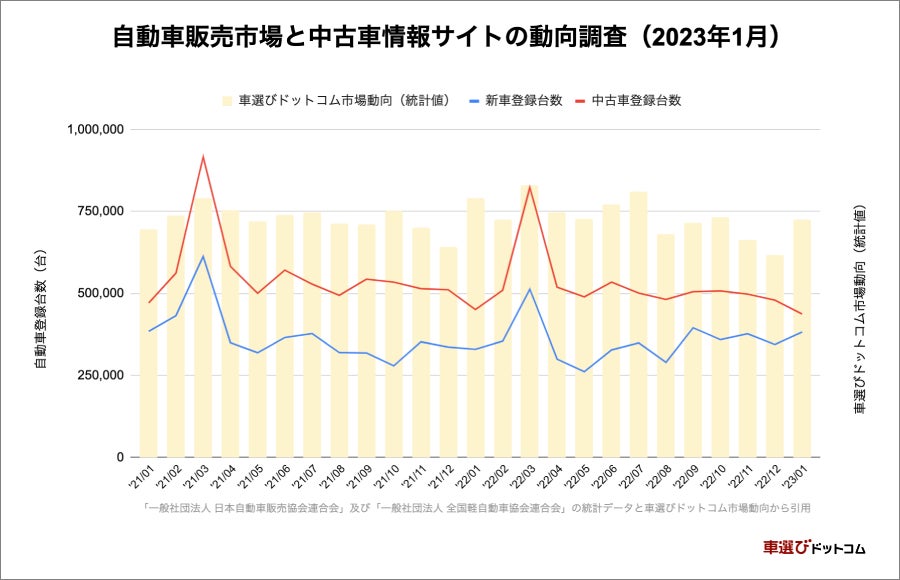 - 中古車情報サイト「車選びドットコム」の動向(2023年1月)