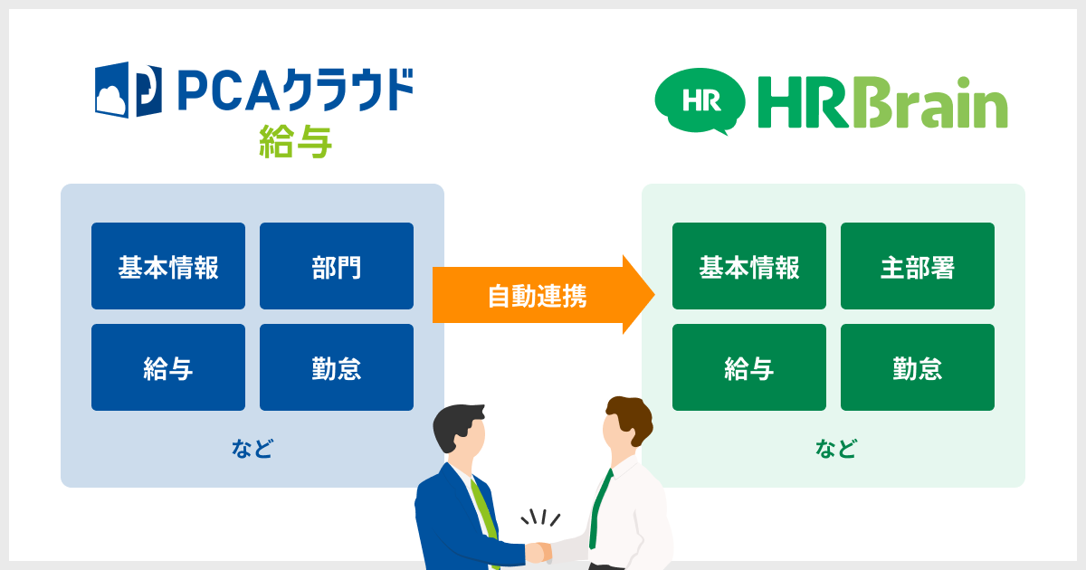 株式会社HRBrain(本社:東京都品川区/代表取締役CEO:堀 浩輝 以下、当社)は、『PCAクラウド』や『PCAサブスク』をはじめとするサブスクリプション型基幹業務システムを開発・販売するピー・シー・エー株式会社(代表取締役社長:佐藤文昭 本社:東京都千代田区 プライム銘柄コード9629 以下:PCA)が提供するクラウド給与ソフト「PCAクラウド 給与」とAPIによるサービス連携を開始しました。