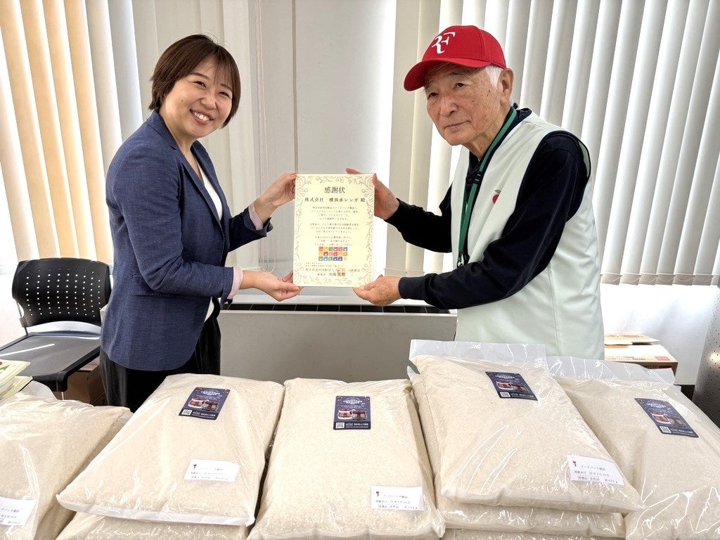 また、去る 2025 年 4 月 5 日(土)には、横浜市中区で行われたフードバンク横浜のイベント「中区 ひとり親支援」において、当社からフードバンク横浜へお米の贈呈を行い、支援活動に参加しました。