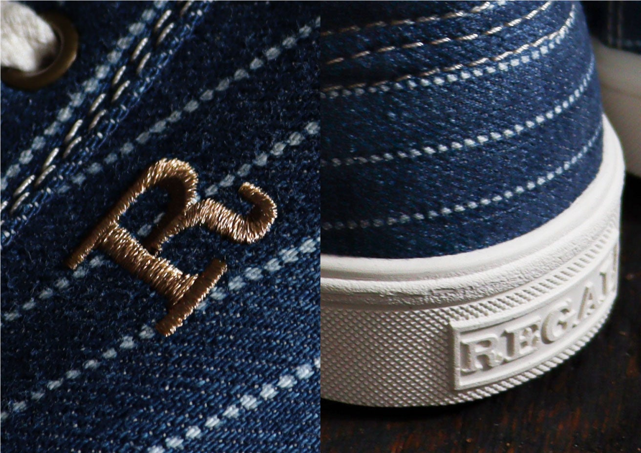 【REGAL】老舗染工場と共同開発のオリジナルウォバッシュデニムを纏った、ヴィンテージライクな「Rマークスニーカー」