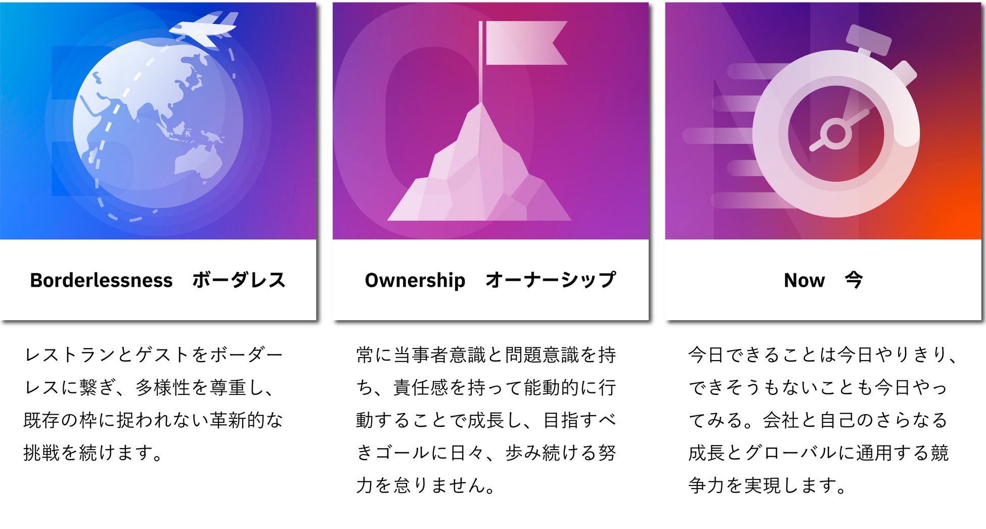 テーブルチェックは、「Dining Connected ~世界中のレストランとゲストをつなぐプラットフォーム~」をミッションに事業を展開する日本発レストランテックカンパニーです。テクノロジーを活用した次世代の「おもてなし」を実現します。現在、展開している主なサービスは、飲食店向け予約・顧客管理システムと、ユーザー向け飲食店検索・予約ポータルサイト。24時間365日リアルタイムの空席情報を把握することで、飲食店にもゲストにもより良いダイニング体験の実現をサポートしています。