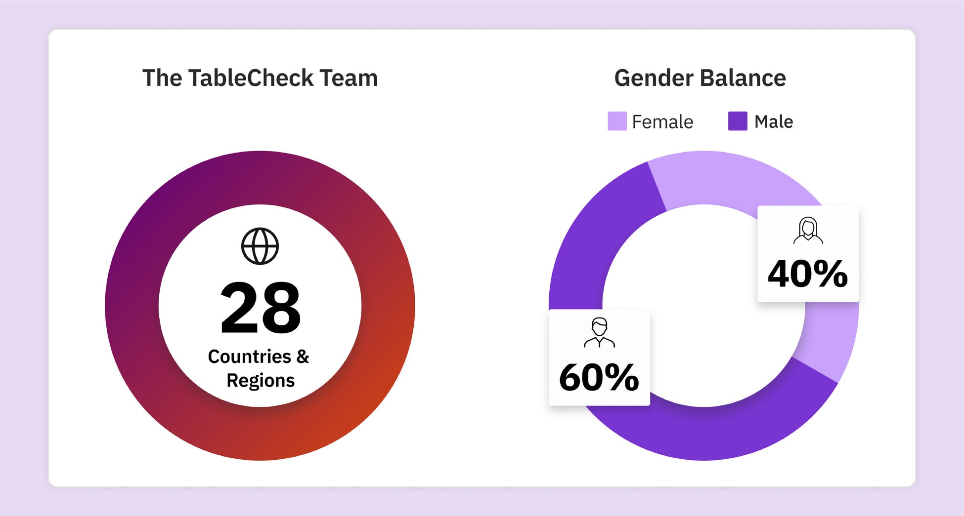 事業成長と連動してテーブルチェックの従業員数も急速に増加し、2019年から約3倍の198名にまで増え、28の国と地域から優秀な人材が集っています。創業当初からグローバル展開を目指すテーブルチェックの社内公用語は日本語と英語です。多様なバックグラウンドを持つメンバー同士が、日本語と英語でコミュニケーションを図りながら、ボーダレスな環境を実現し、イノベーションを推進しています。