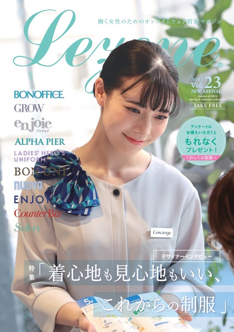 ユニフォーム専門商社㈱ユニフォームネットが年2回発行する、働く女性のためのオンタイムウェア情報マガジン「Lezene(レゼン)」。その最新号vo.23を発刊いたしました。