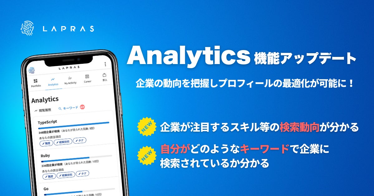 企業の検索動向や自分の市場価値が分かりやすく。ハイスキルITエンジニア転職サービス「LAPRAS」のAnalytics機能がアップデート