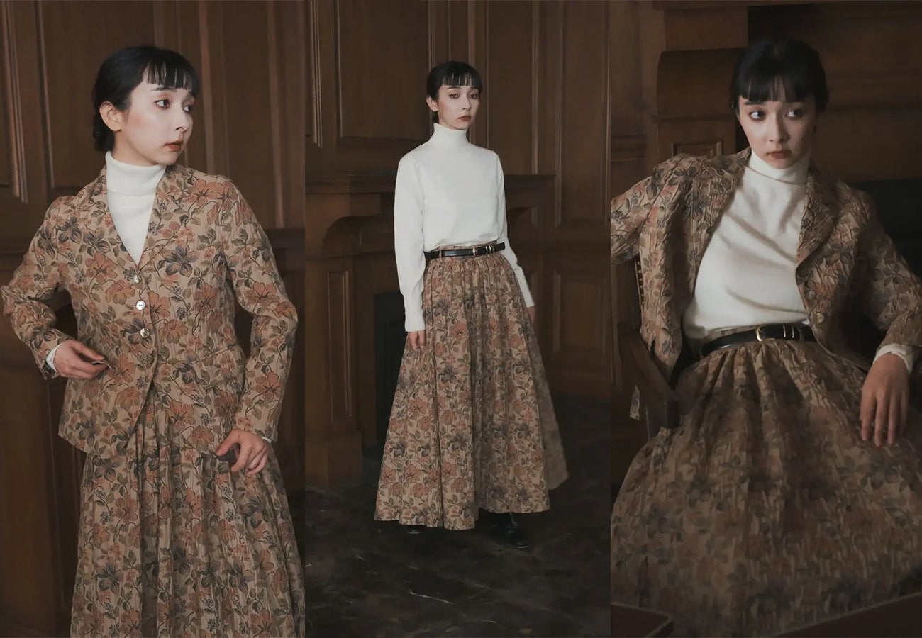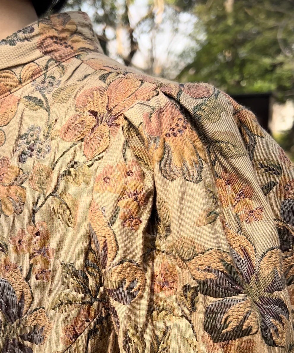 foufouは、ブランド当初から作り続けているクラシカルでタイムレスなデザインとジャガード生地の相性の良さや、国内メーカーが持つ技の豊富さに魅了され、2022年から織物産地である群馬県桐生市において100年以上の歴史を持つ老舗メーカーと共にオリジナルジャガード生地を制作してきました。